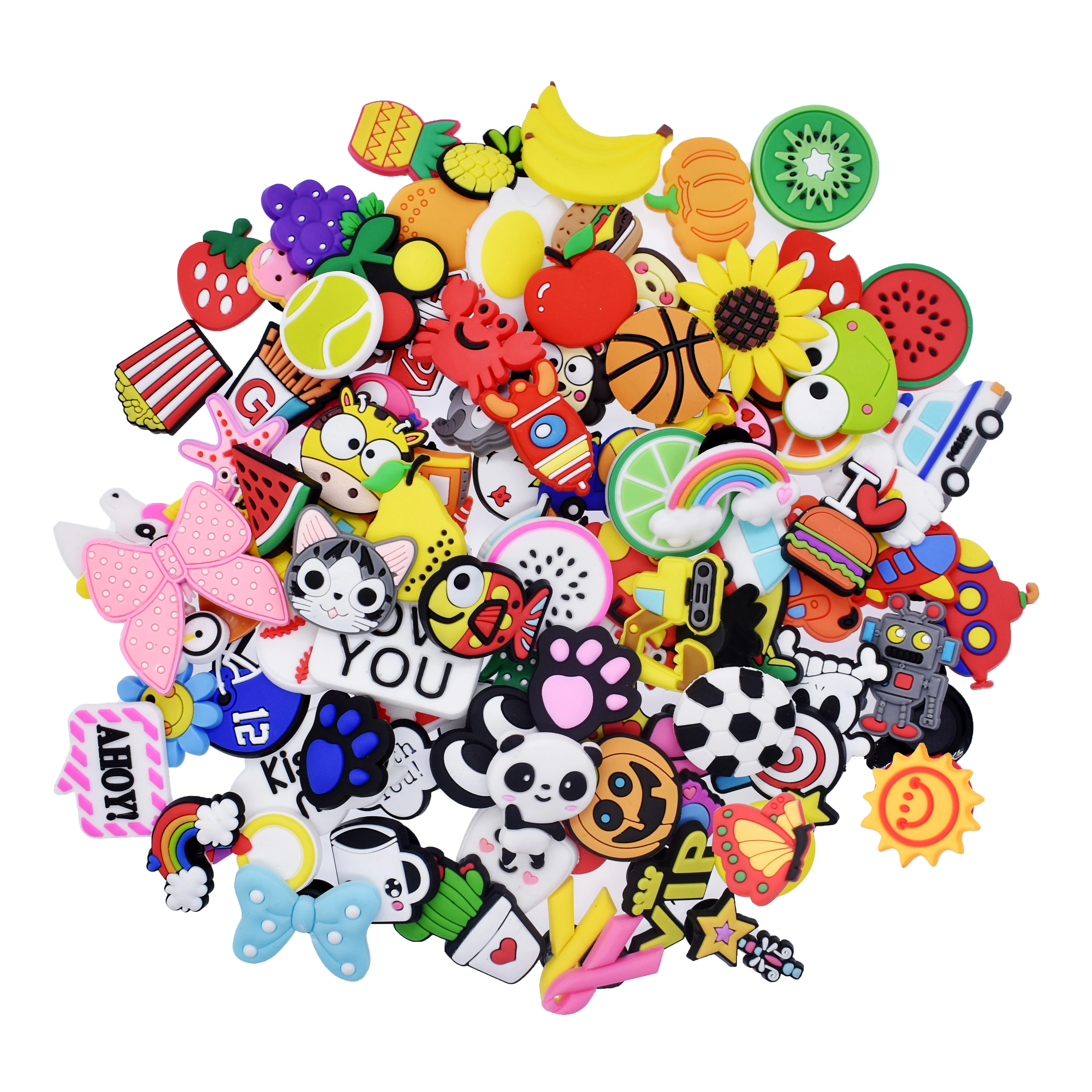 100 шт. оптовая продажа микс тачки фрукты рыбки значок обувь шармы ПВХ украшения для браслетов Croc DIY аксессуары для детей X-MAS подарки