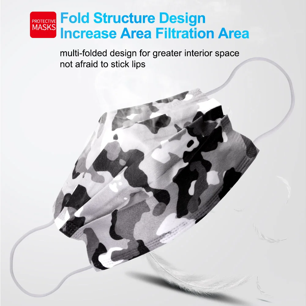Отличные маски в камуфляжном стиле. Его защита и идеально подходит для вашего лица. Я заказал несколько упаковок. Я настоятельно рекомендую
