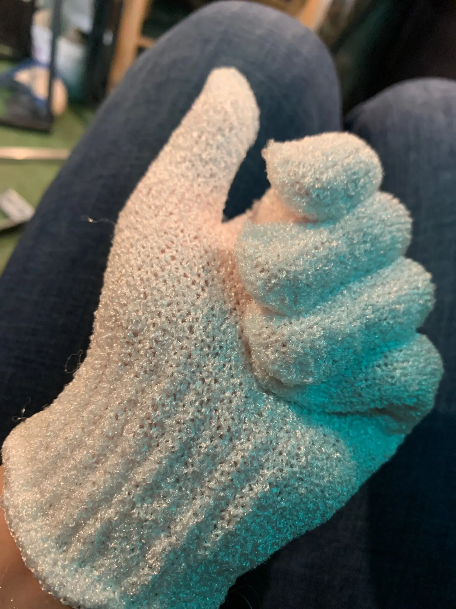 Перчатка пришла ,спасибо продавцу,жёсткая, что мне и надо было.Для отшелушивания.Белого цвета,хотелось фиолетового,ну да ладно .Спасибо продавцу.
