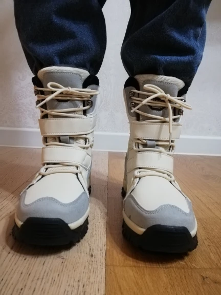 Женские теплые зимние ботинки, на платформе, на липучке, удобная Уличная обувь для походов, белые, большие размеры