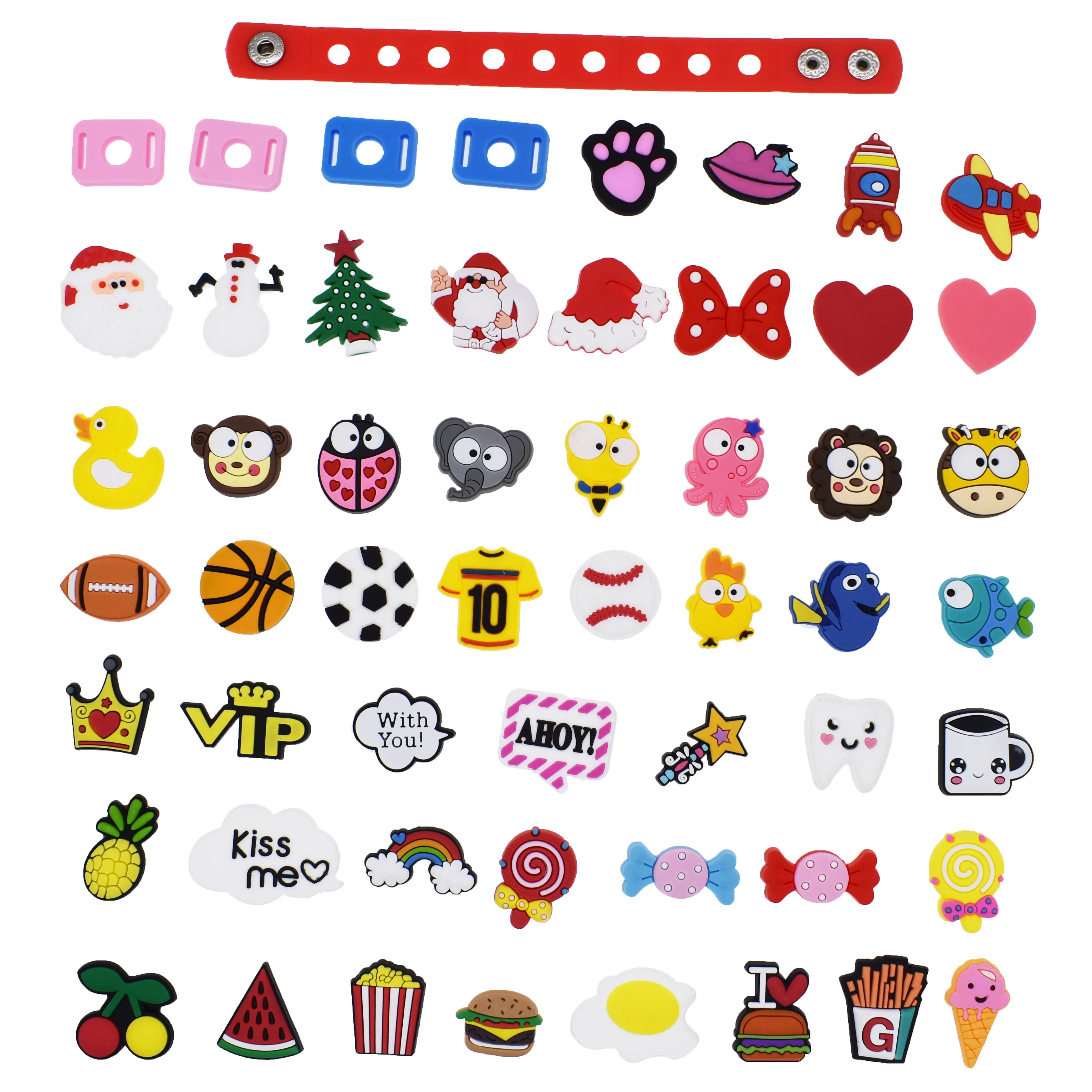 Подвески для обуви из ПВХ + браслет + кружевной адаптер с мультяшными животными львом кроком декоративные аксессуары для обуви подарки для детской вечерние оптом 50 шт.