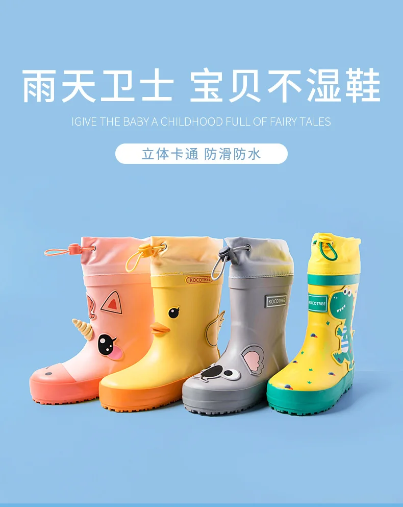 Сапоги детские резиновые, водонепроницаемые, Нескользящие, с мультяшным принтом