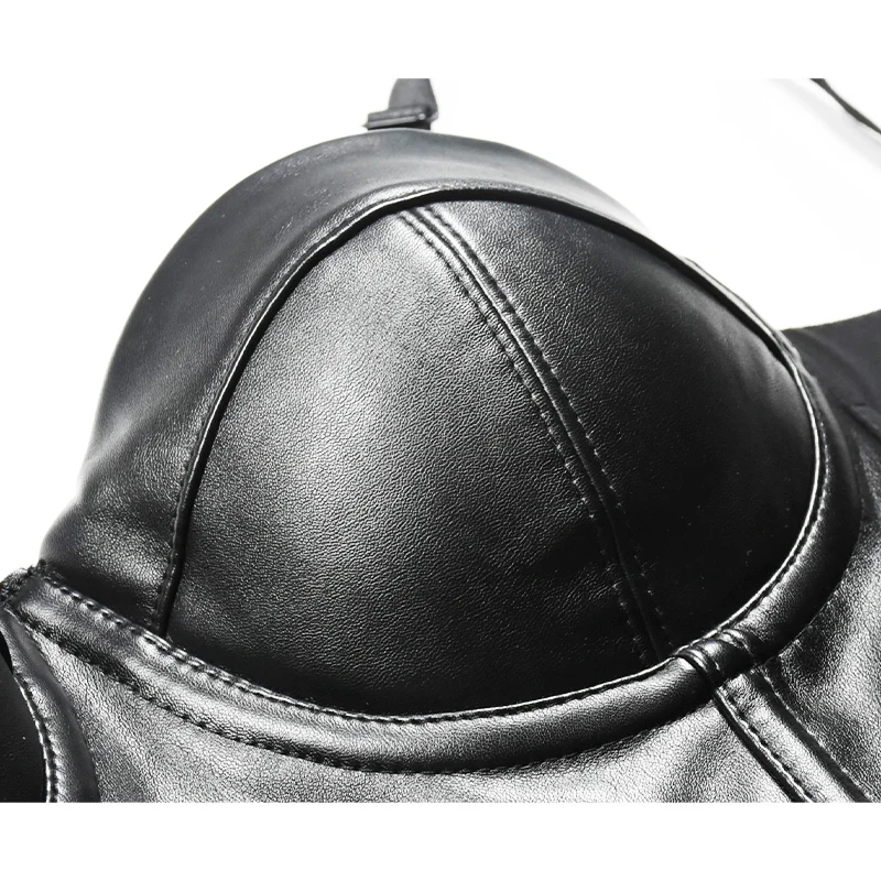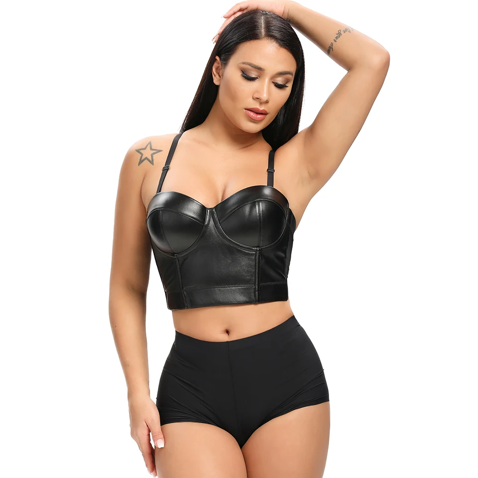 Женский бюстгальтер-корсет с размера плюс, топы, одежда в готическом стиле, сексуальный лиф, Черный корсет из искусственной кожи, бюстье в стиле стимпанк, 6XL