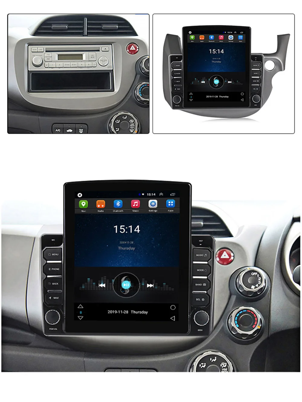 Navifly Tesla стиль для Honda Jazz 2 GG 2008 - 2014 подходит для 2 RHD Android видео автомобиля радио мультимедиа плеер навигация gps No 2 din