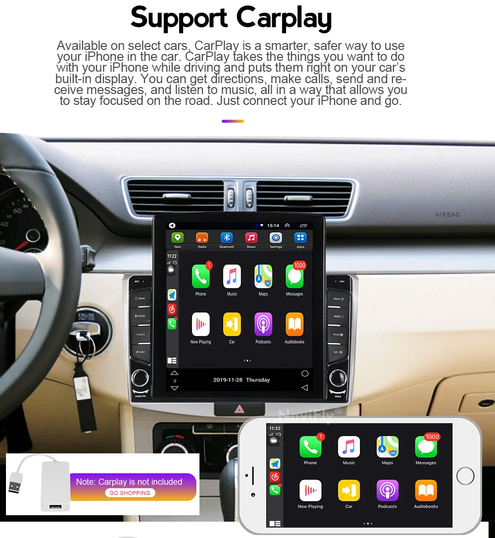 -Необходимо купить адаптер Carplay Этот DVD предоставляет usb-разъем, который поддерживает подключение к телефону, легко управлять и обрабатывать Iphone через устройство.