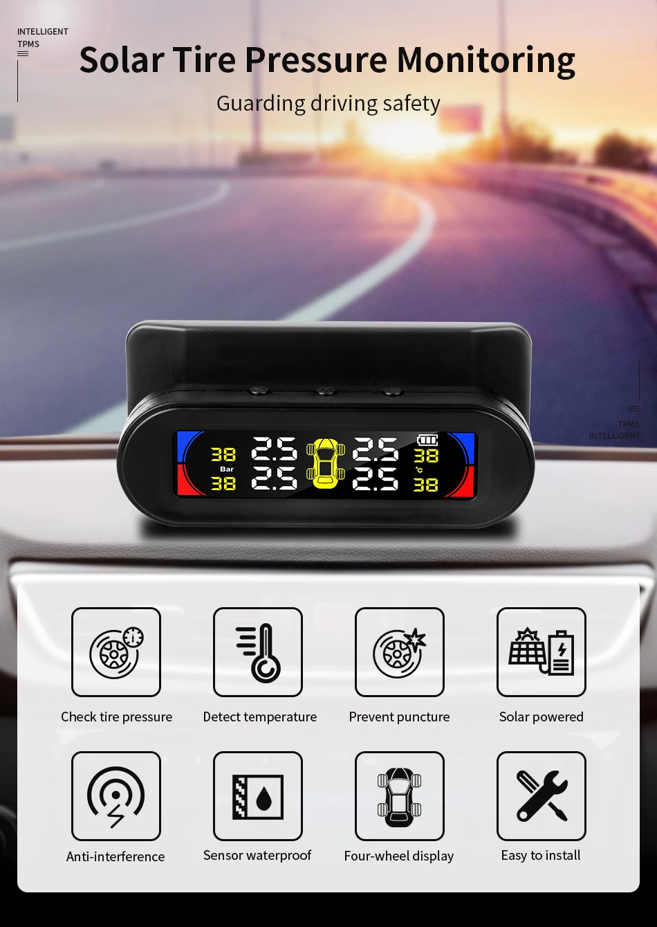 Тип: DeVeluck умный Солнечный TPMS давление в шинах автомобиля