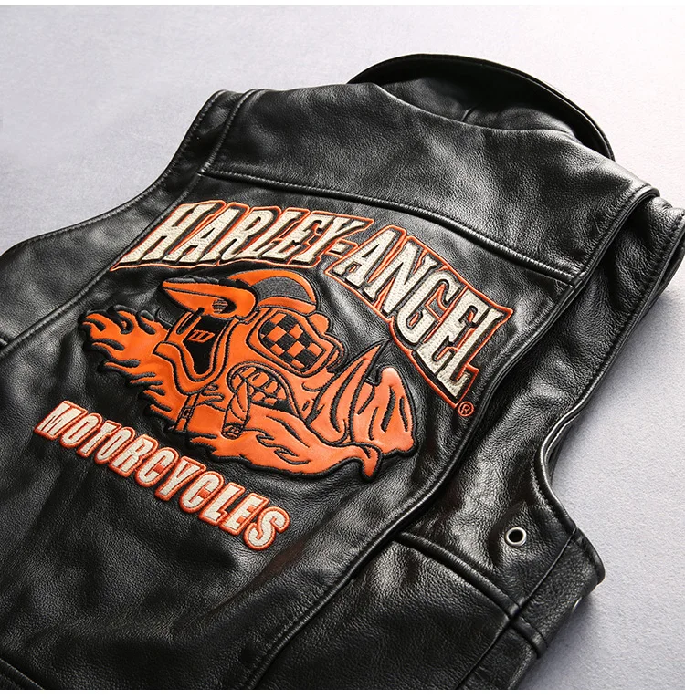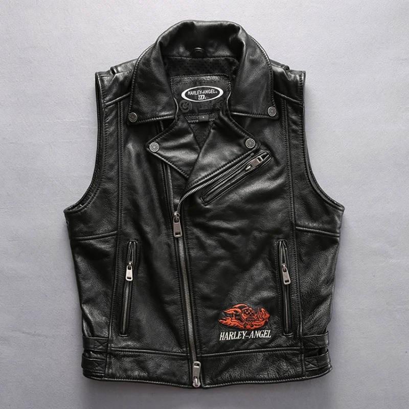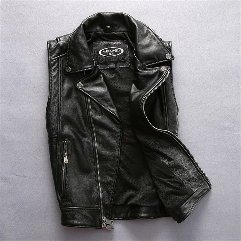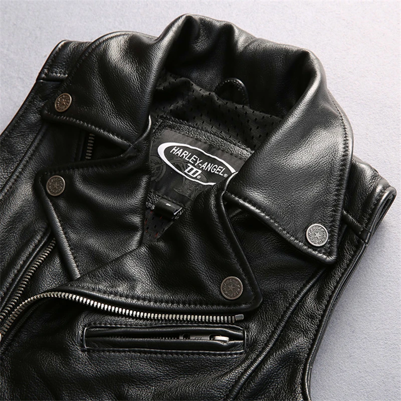 Байкер Бесплатная доставка 2020 мотоциклетная корова мужская короткая тонкая уличная винтажная жилетка из натуральной кожи пальто без рукавов