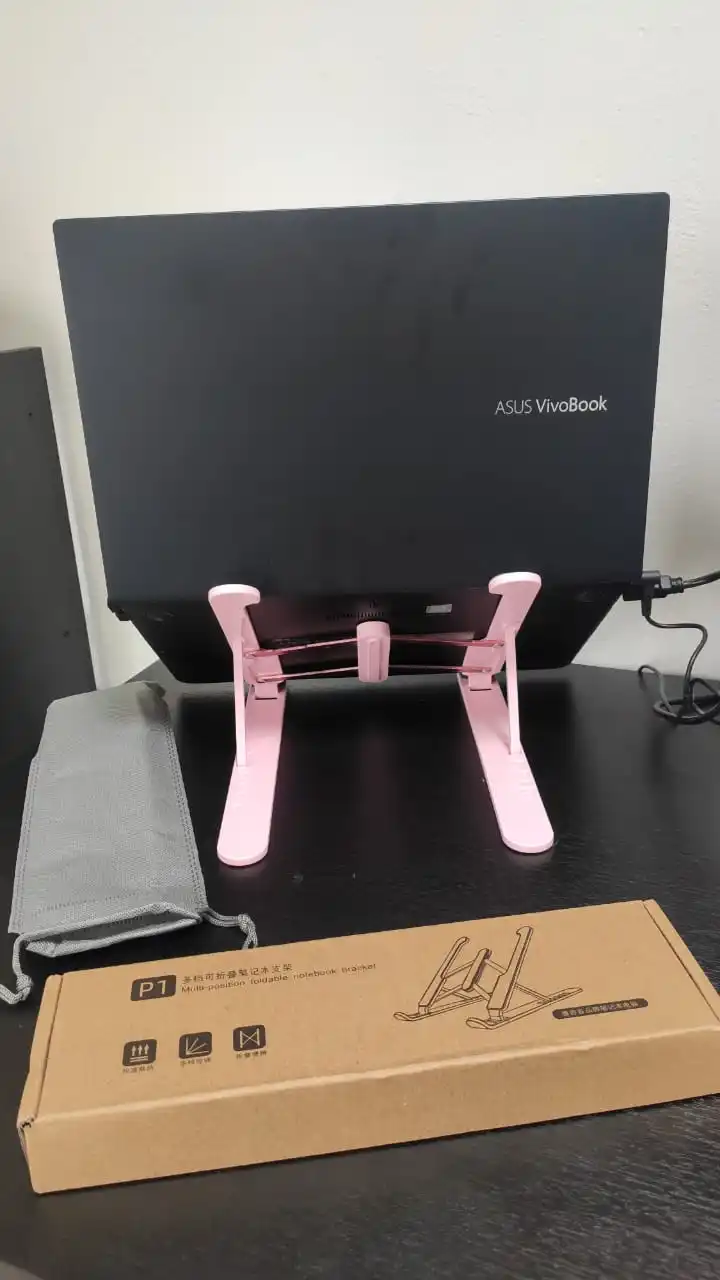 Товар прибыл намного раньше, чем я ожидал. Он выглядит достаточно крепким, но из-за пластмассы он кажется немного слабым. Благодаря открытому ноутбуку он немного несбалансирован, поэтому вы, вероятно, не должны слишком часто касаться его. Кроме того, он выглядит эстетично и сумка, которая поставляется с ним, удобна, когда вам не нужна подставка