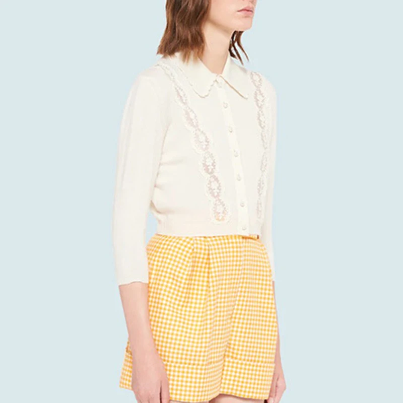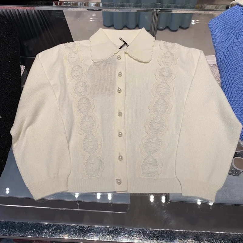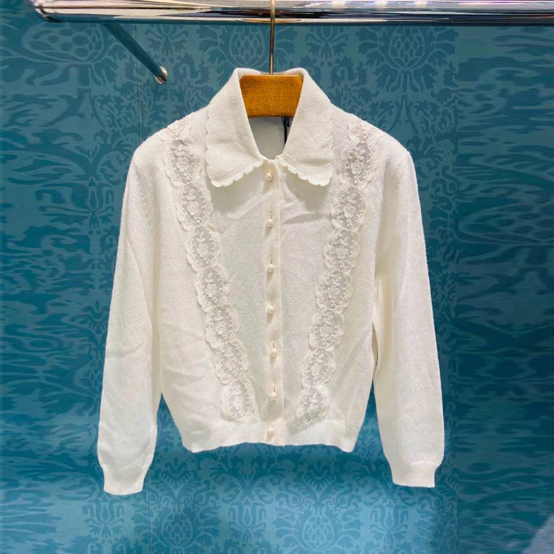 Женский вязаный кардиган, повседневный элегантный белый свитер с вышивкой, Осень-зима, 2020