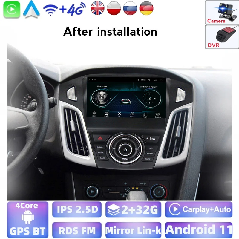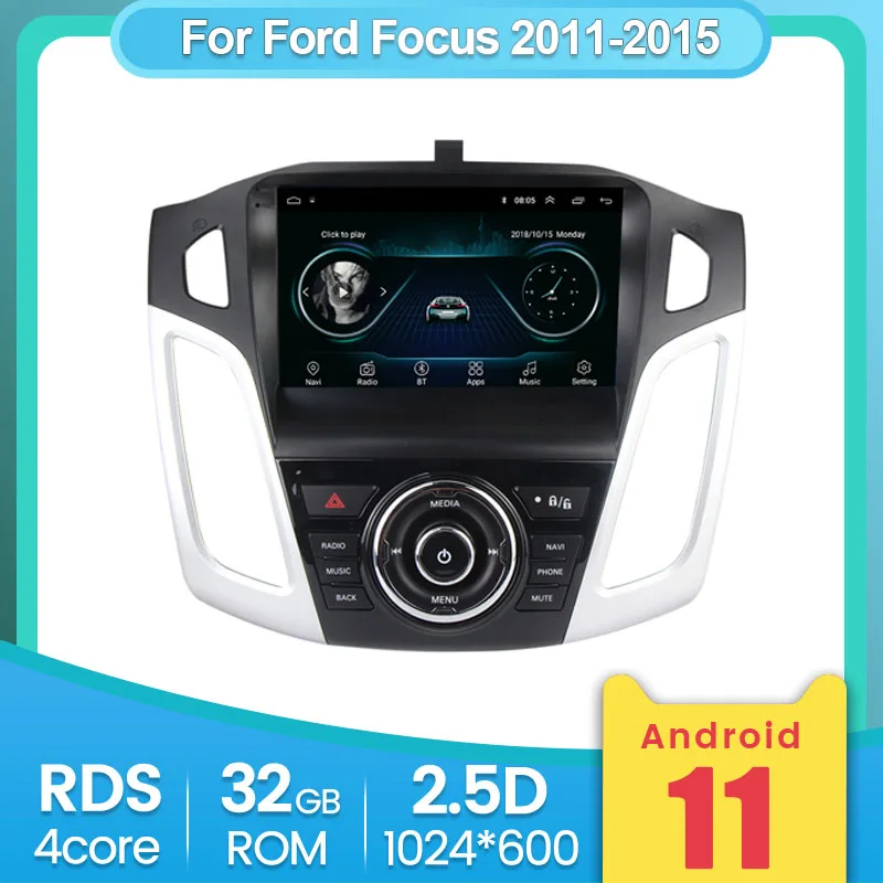 Автомагнитола 1024x600P, Android 9,0, 2 Гб ОЗУ, 32 Гб ПЗУ, GPS, для Ford Focus 3, 2011, 2012-2019, мультимедийный экран IPS, без DVD, цветная подсветка, Carplay