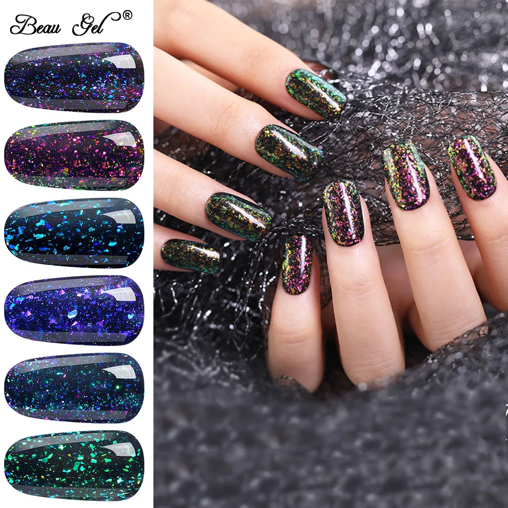 Гель Beau 8 мл голографический Хамелеон Гель лак для ногтей Блестящий лак для ногтей Дизайн ногтей отмачиваемый УФ-гель лак черная основа