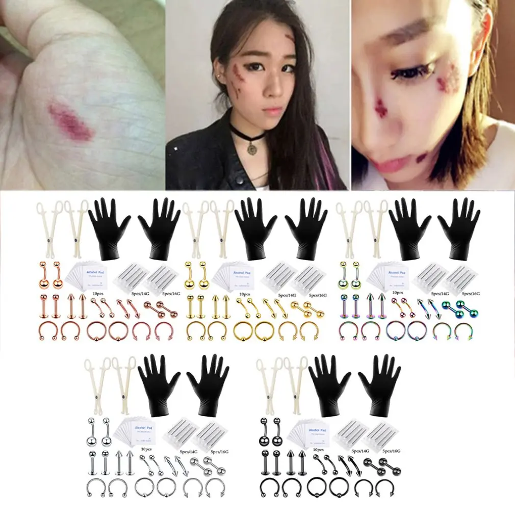 4. Продуманное производство: 42 шт пирсинг для тела ювелирные изделия и инструменты, включая все, что вам нужно для пирсинга тела.