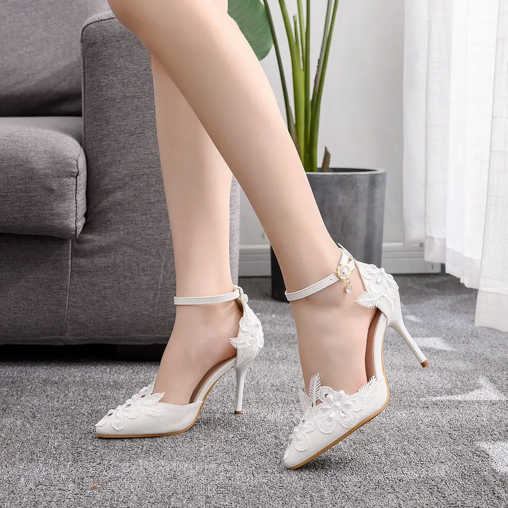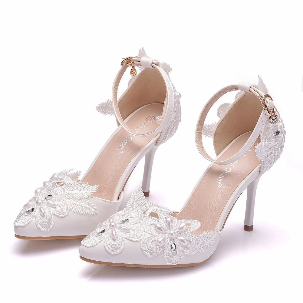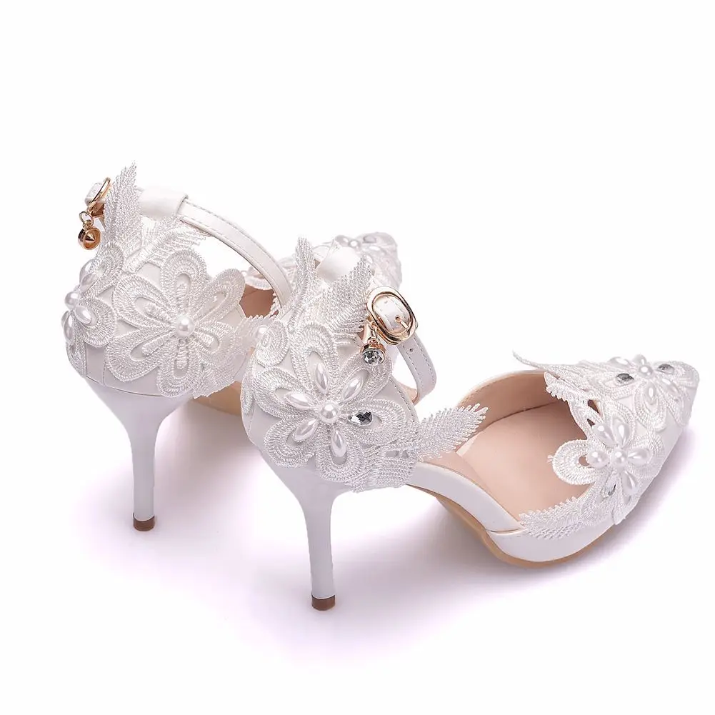 Летние женские сандалии с кристаллами; Обувь белого цвета; Кружевное платье Стразы Свадебная обувь Шпильки с острым носком; Вечерние модельные женские босоножки женская обувь A0051