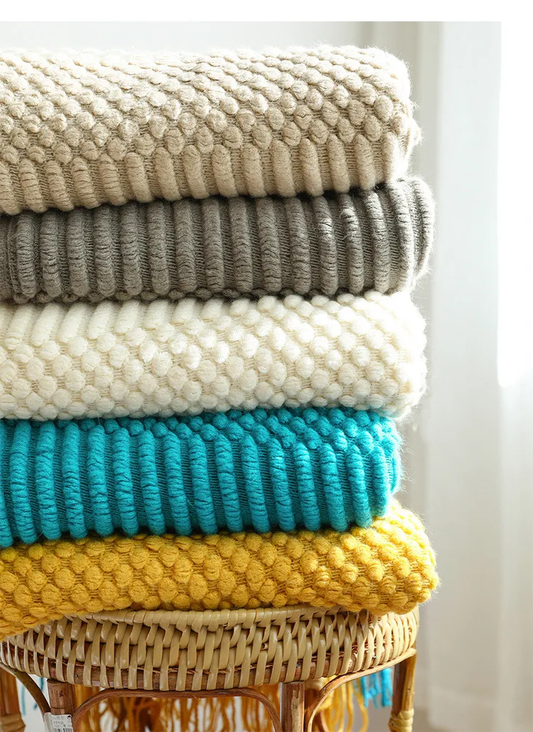 Вязаное одеяло в нордическом стиле для кровати, дивана, однотонное ...