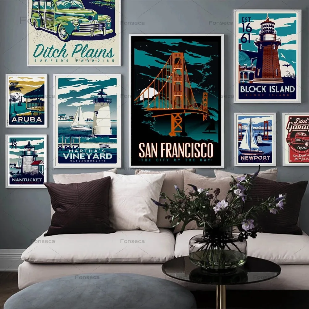 Винтажная Картина на холсте, Нью-Йорк, Бруклин, Сан-Франциско, иску...