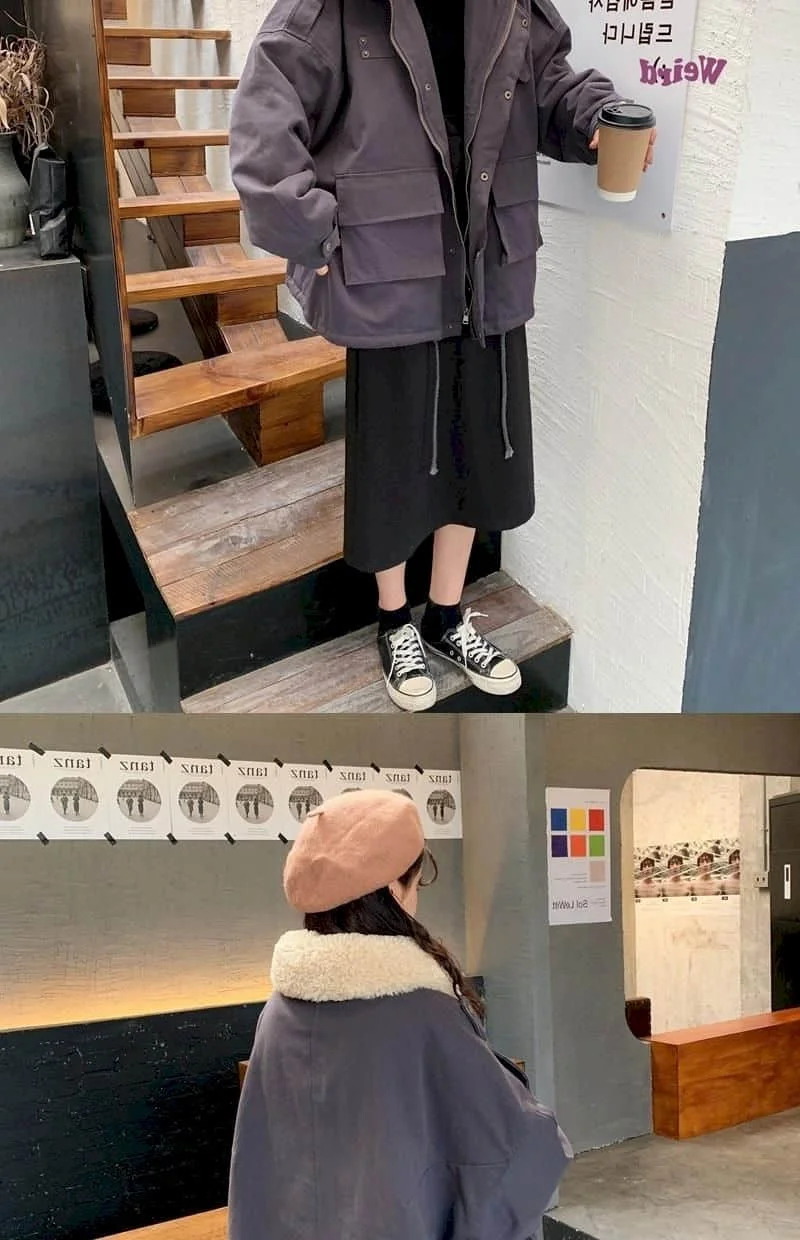 Куртка МужскаяЖенская в стиле панк, хлопковое пальто в Корейском ст...