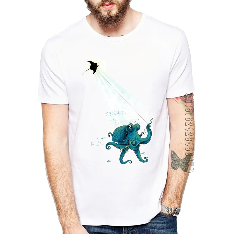 Футболка мужская Летающая повседневная с рисунком осьминога