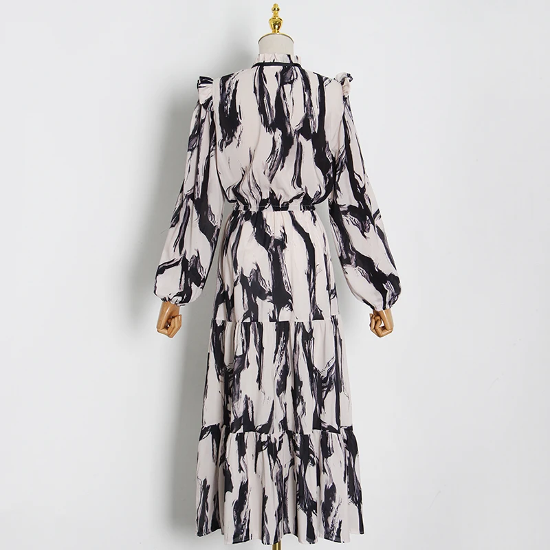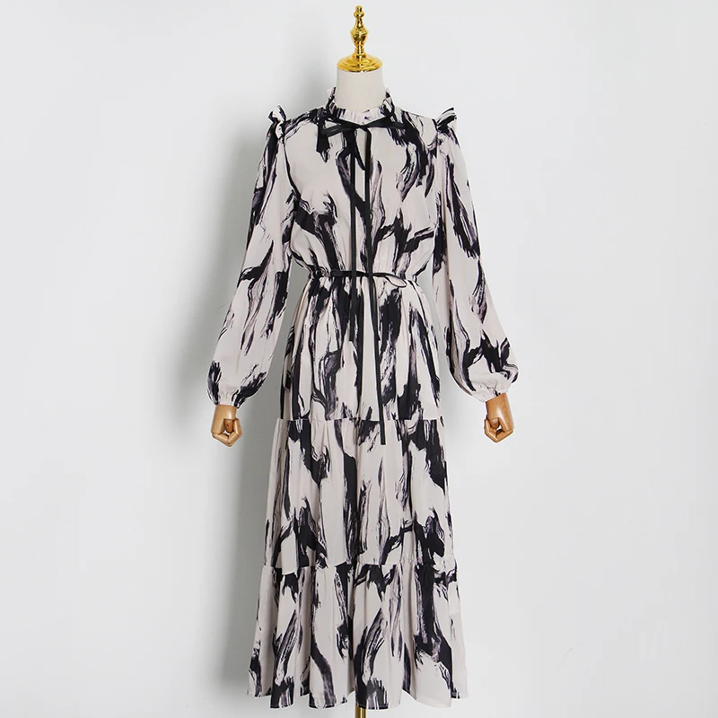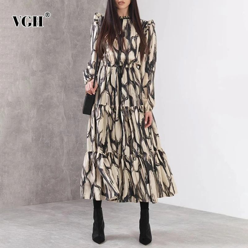 Женское винтажное платье VGH, элегантное платье с круглым вырезом и длинным рукавом, с высокой талией, 2020