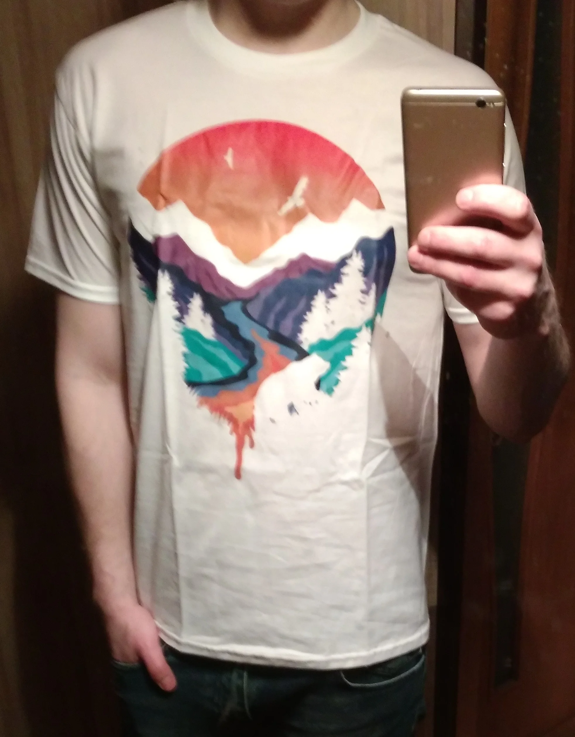 Немного большой... Я думал, что это будет меньше. Тем не менее, рубашка очень классная, и я получил ее очень скоро