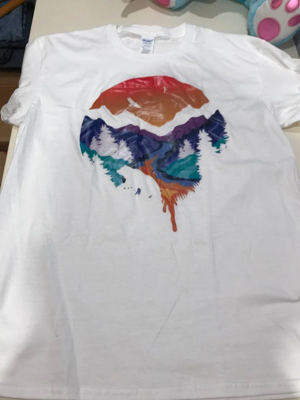 Мужская хипстерская футболка из 100% хлопка с изображением полночной сцены, модная футболка с принтом цветных гор, Повседневная графическая футболка с круглым вырезом, забавная футболка