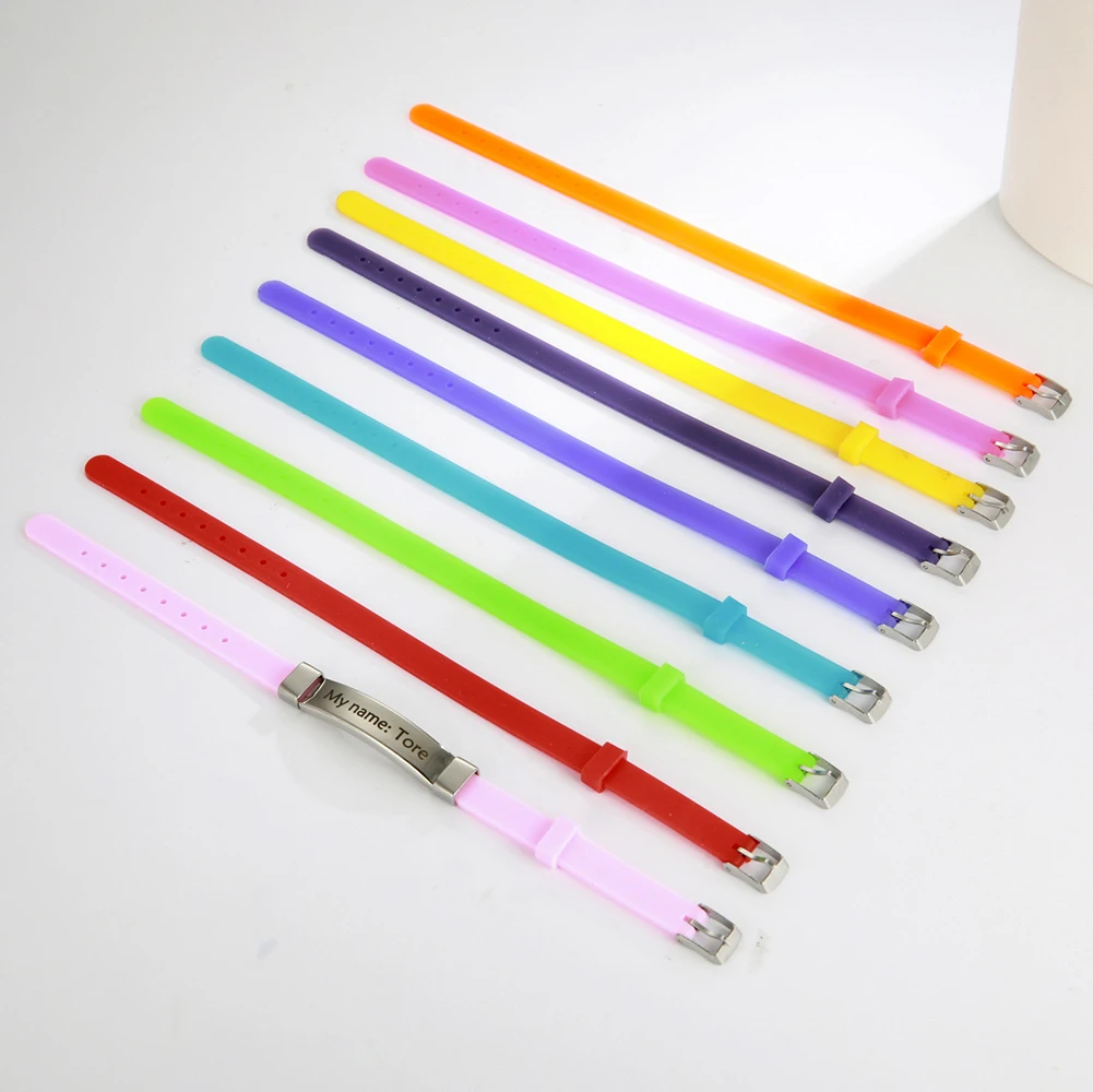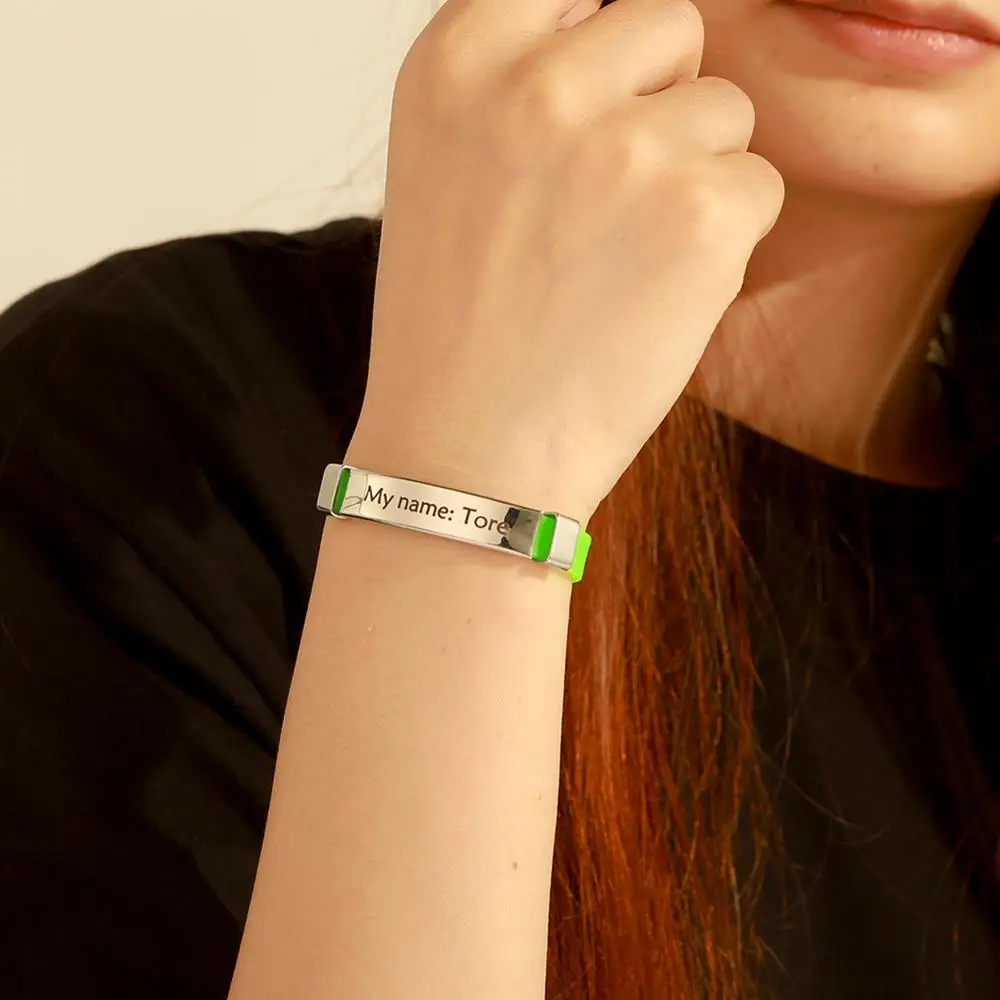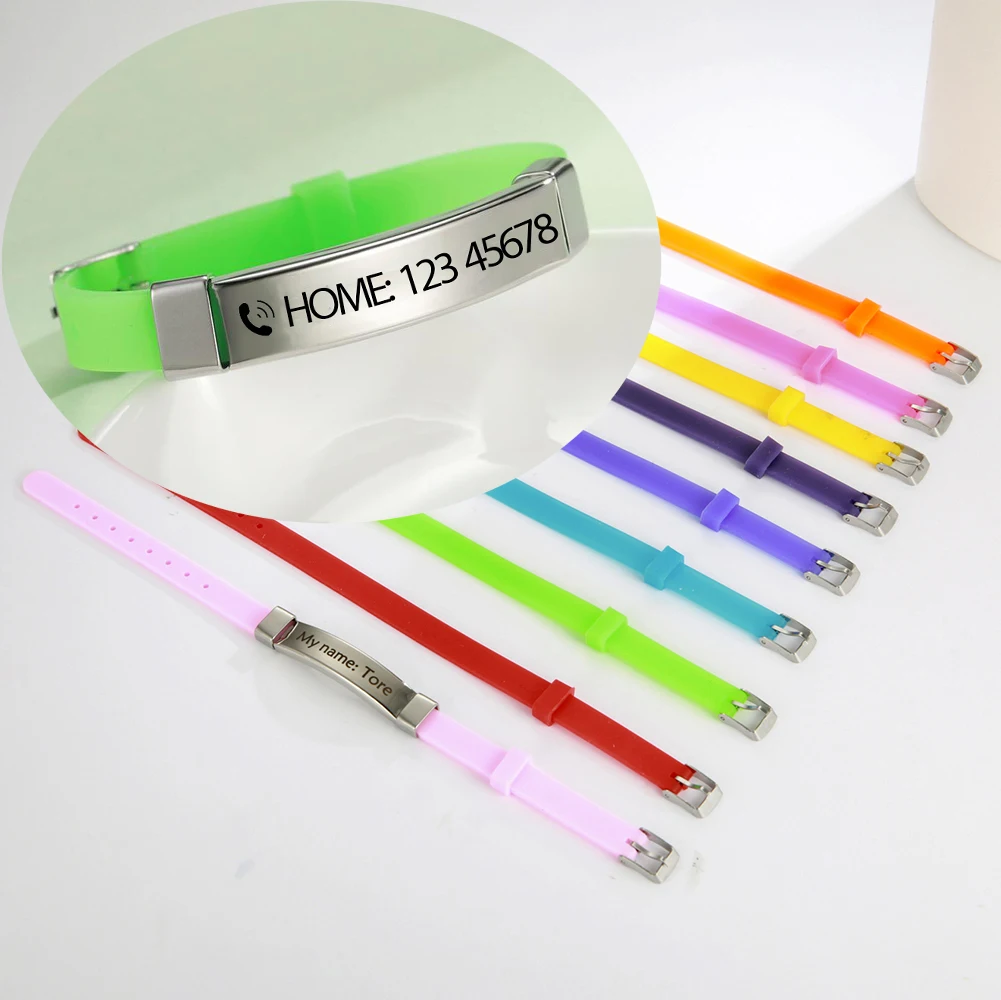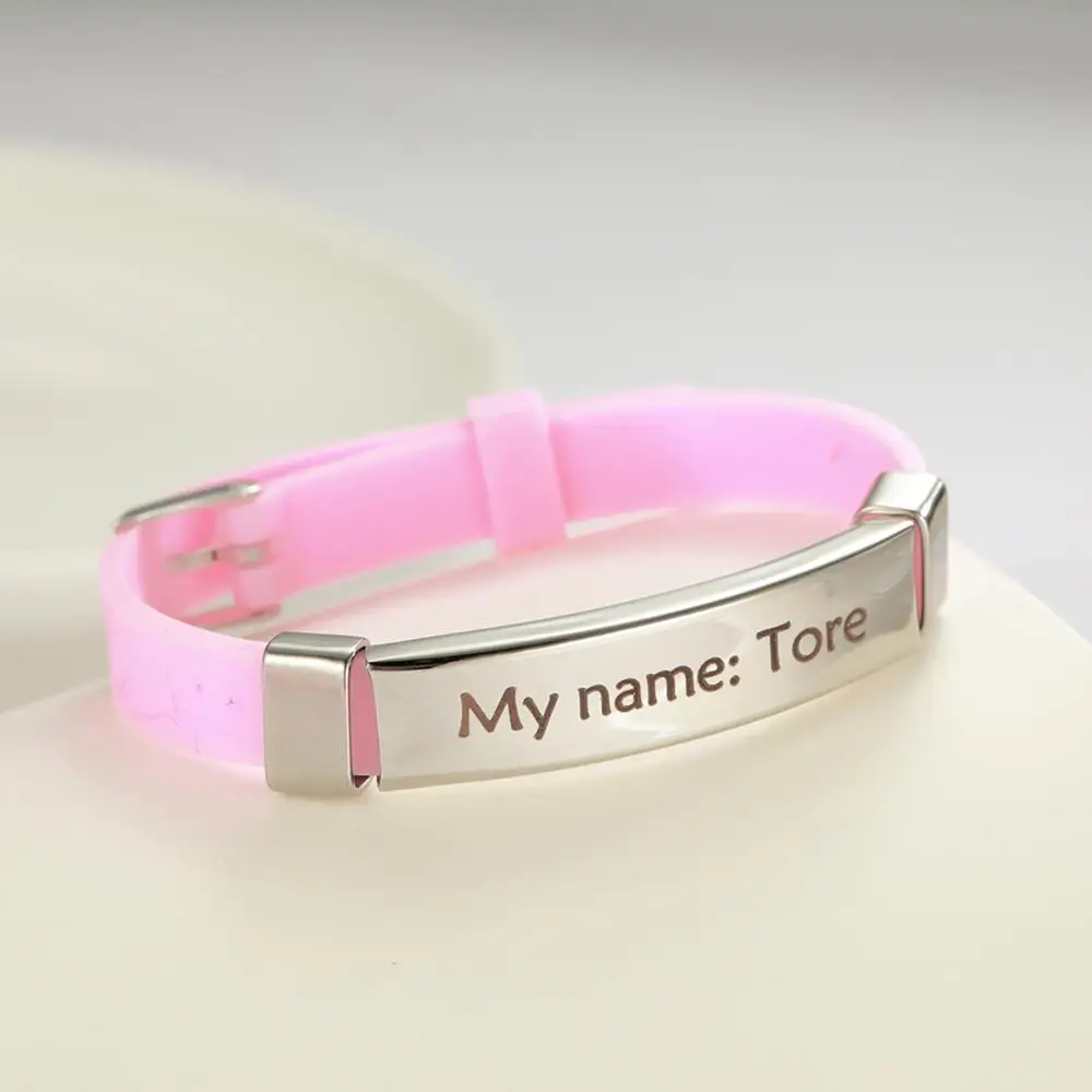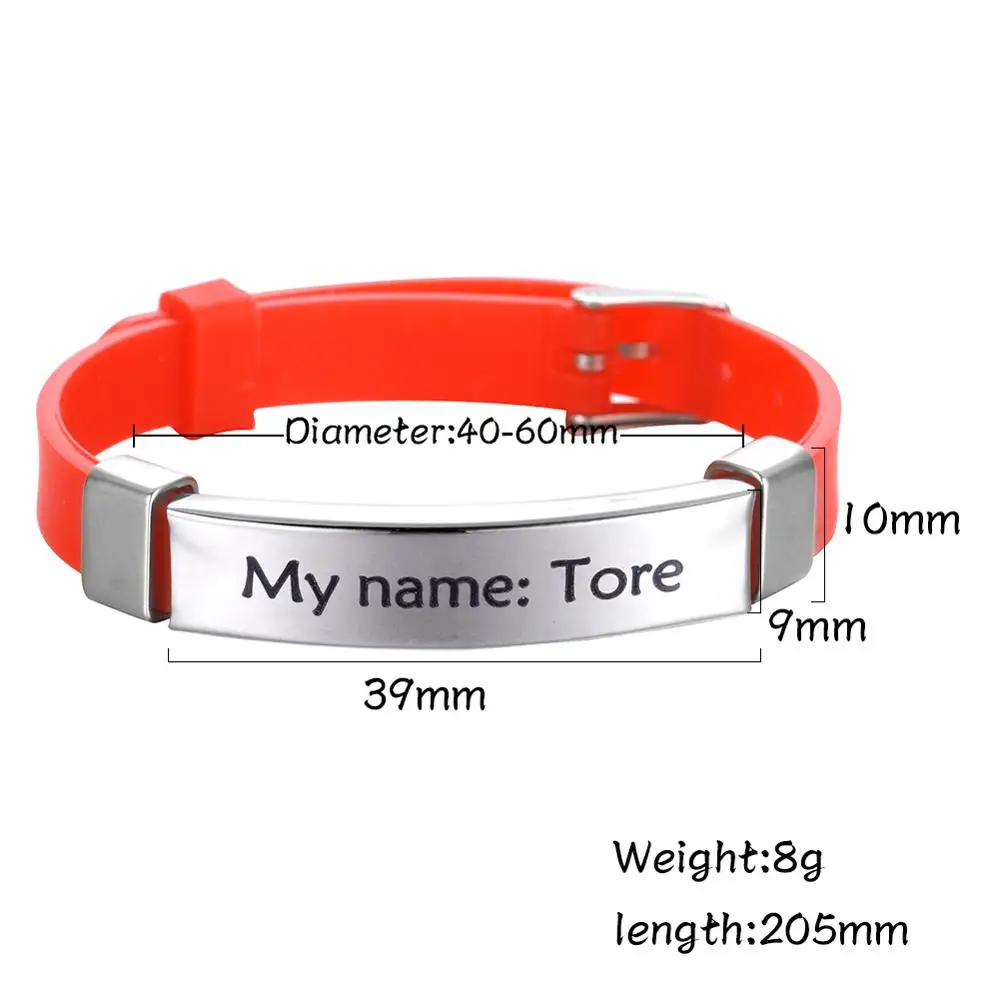 Lucktune Индивидуальные мужские браслеты с именем ID на руке силиконовый браслет из нержавеющей стали для женщин и детей индивидуальный браслет ювелирные изделия подарок