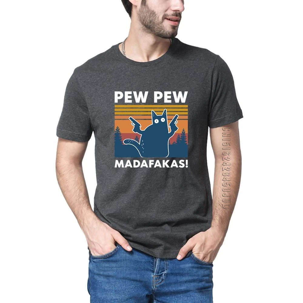 Футболка Pew, новинка, забавная Винтажная летняя мужская футболка с круглым вырезом и котом из 100% хлопка, Подарочные топы с юмором, Прямая поставка