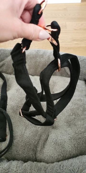 Атрикль получил быстро. У нас 5-месячный Французский бульдог, который имеет небольшой разъем (7kg и довольно тонкий телосложение), а размер М немного велик. Жгут кажется довольно прочным. Я очень доволен этим