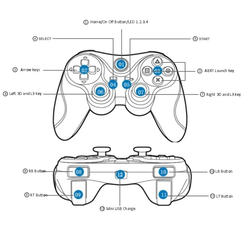 ПК или ТВ-приставка: вставьте приемник в usb-порт, в состоянии выключения контроллера, удерживайте нажатие кнопки «выбрать +» «домой» в течение 5 секунд, он будет автоматически подключен. Подключение кабеля, удерживайте кнопку Пуск, можно напрямую подключить к компьютеру через usb-кабель.
