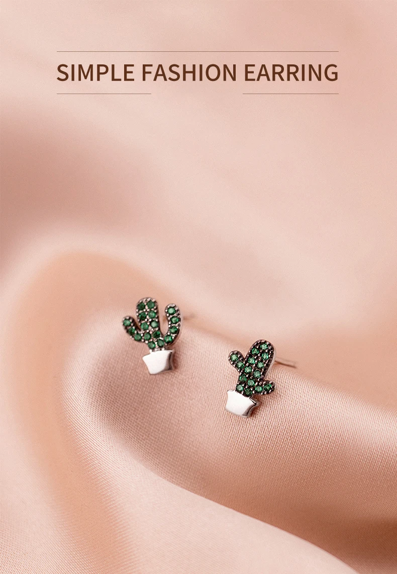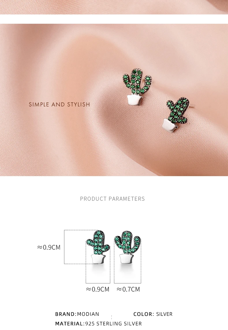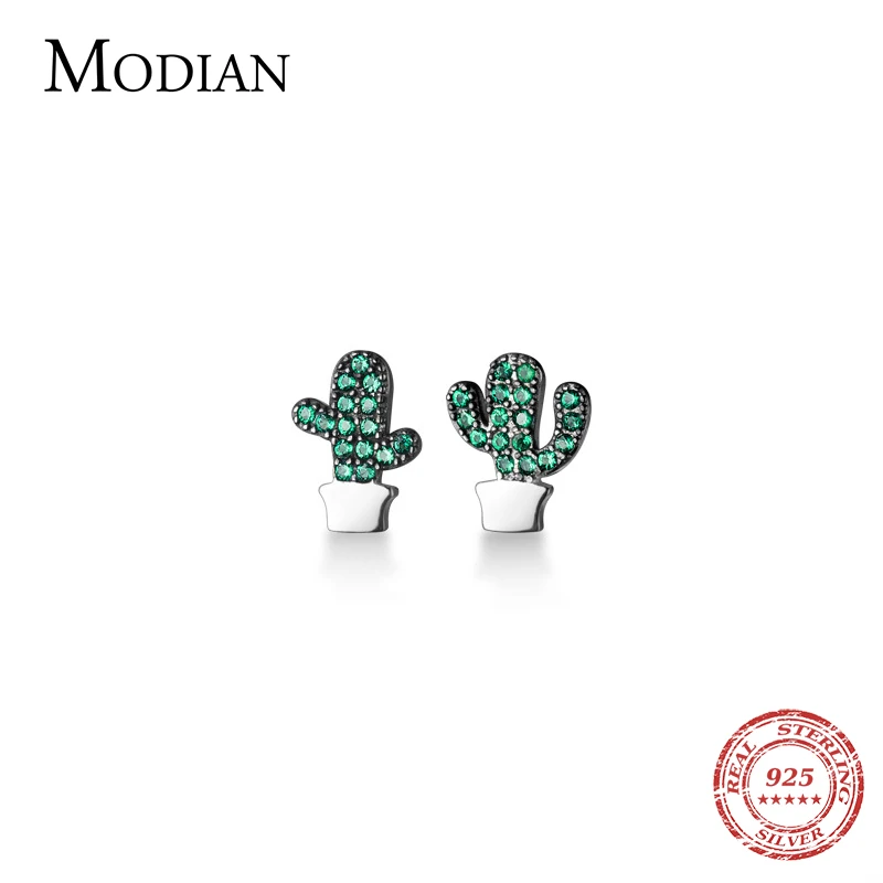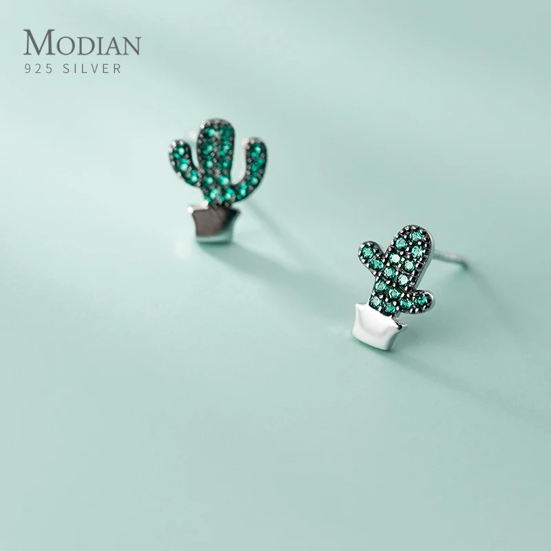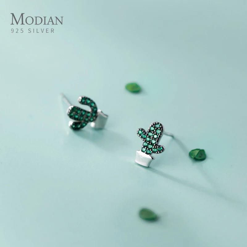 Modian зелеными кристаллами ручной работы; Комплект: милая Винтаж растений кактуса 925 стерлингового серебра крошечный гвоздик в виде капель с кристаллами в форме Женская японская Стиль, хорошее ювелирное изделие