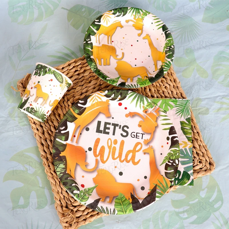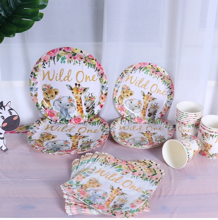Одноразовая посуда Wild One Jungle Safari, декор для тематики вечеринки в стиле сафари, для первого дня рождения ребенка