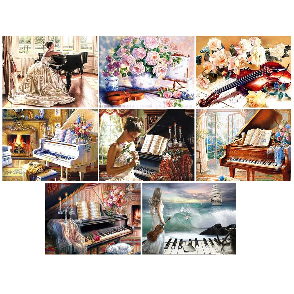 Набор для алмазной вышивки пианино, картина квадратной формы 5d с цветами, мозаика из страз, подарочное украшение для дома