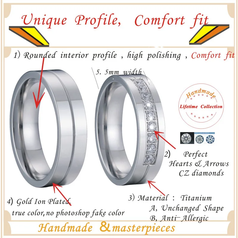 Титановые обручальные кольца для мужчин и женщин, высококачественны...