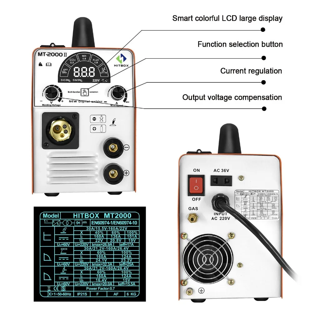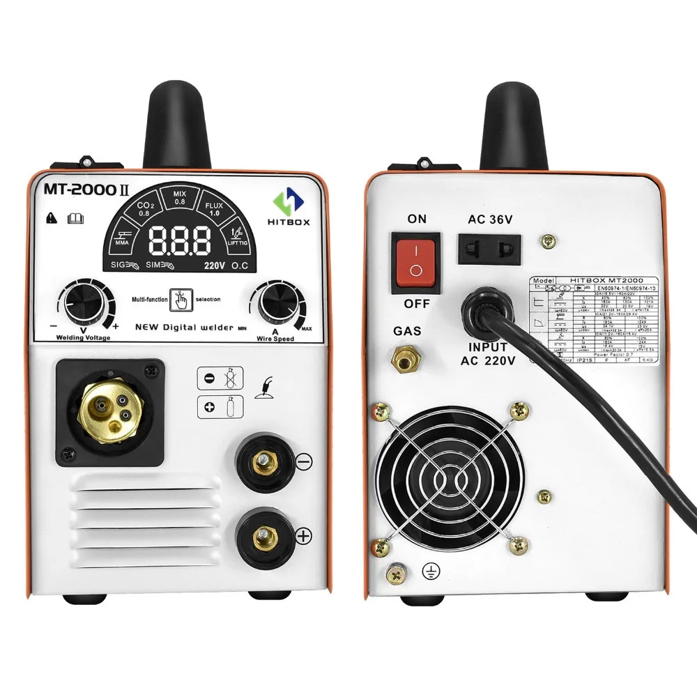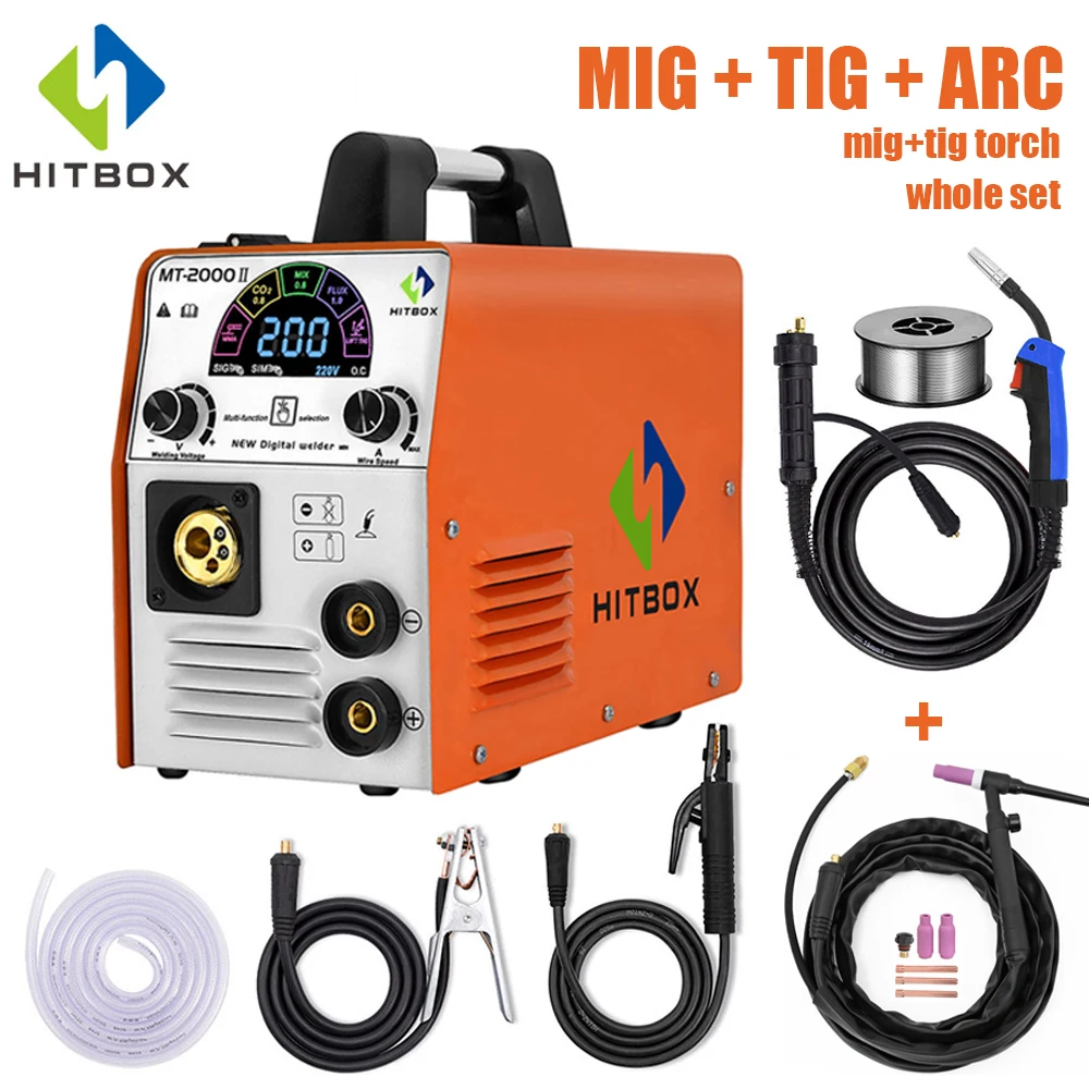 Сварочный аппарат HITBOX Mig Tig MMA 220 В, полуавтоматический сварочный аппарат, инвертор для смешанного газа MT2000, инструмент для украшения металла 5 в 1