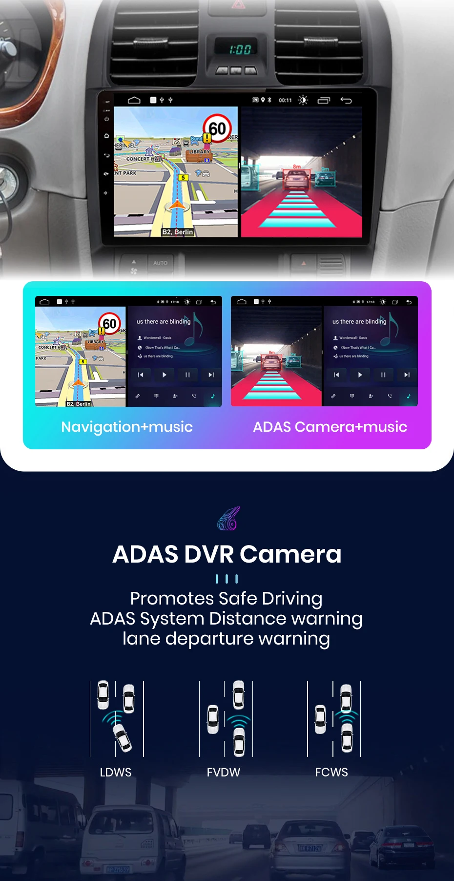 Вы можете использовать навигацию и другие приложения одновременно, такие как прослушивание музыки или включение функций ADAS и т. Д.