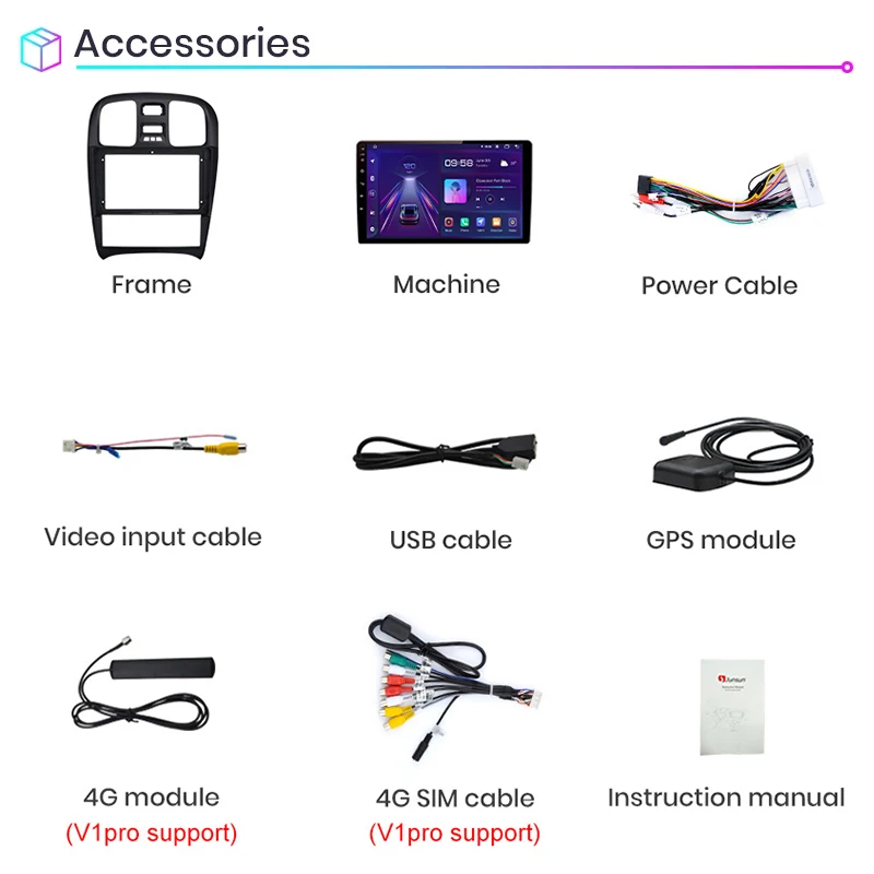 1. Штифт-штифт: Кабель питания Junsun radio' является штифтом для штифта, прост в установке;2. Встроенный Carplay/ Android Auto: Поддержка версии V1Pro, просто используйте кабель телефона, подключите его, стабильный и простой в использовании; (V1 поддерживает только Android Auto, но нужно покупать; V1C не поддерживает)3. Поддержка подголовника: только поддержка версии Junsun V1;