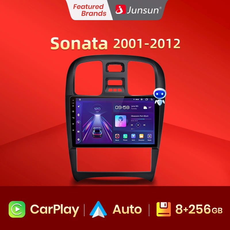 Автомобильный мультимедийный плеер Junsun V1 Pro, 4G CarPlay, Android 10, 4 Гб ОЗУ, 64 Гб ПЗУ, для Hyundai Sonata 2001-2012, GPS, no 2din, 2 din, dvd