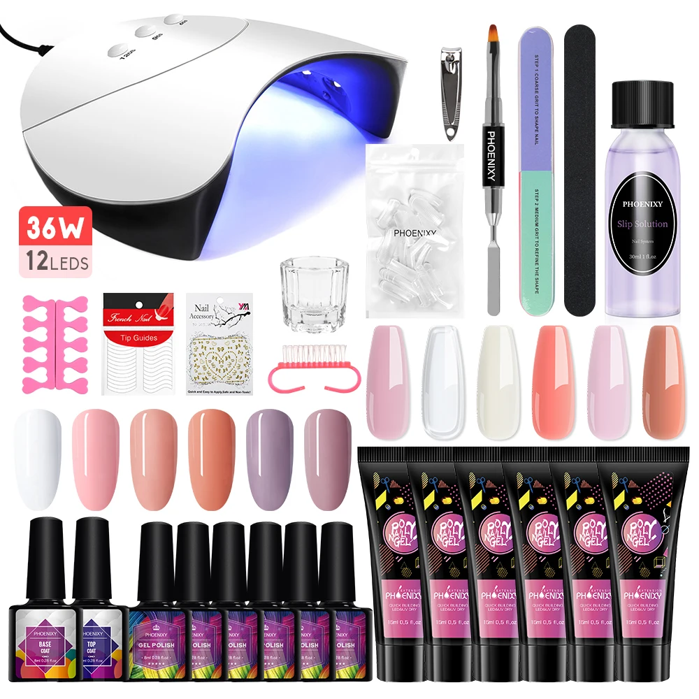 Маникюрный набор поли УФ-гель комплект Гель-лак Набор для создания полного УФ гель для наращивания ногтей маникюрный набор светодиодный светильник Растяжка комплект