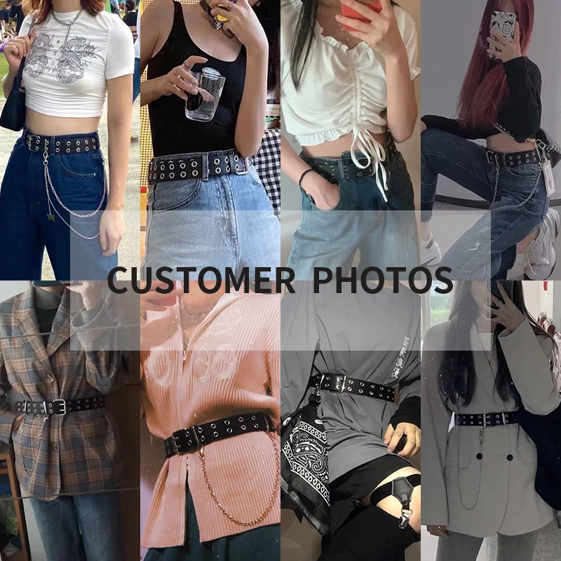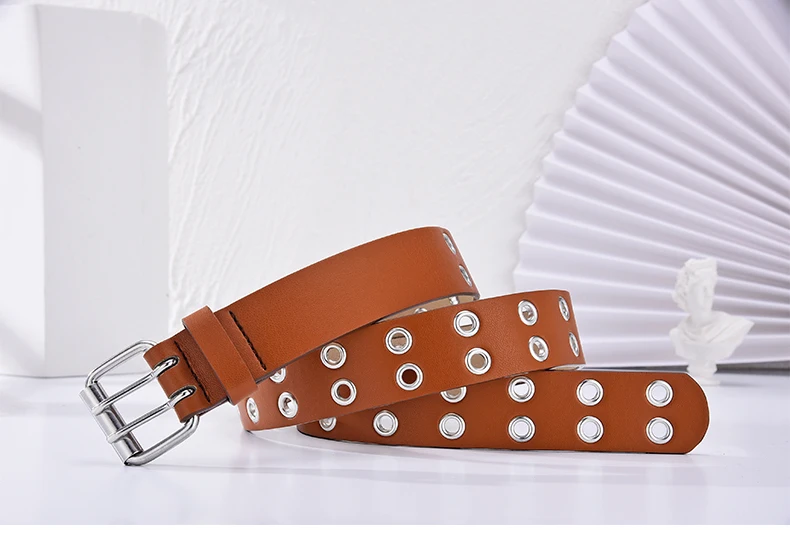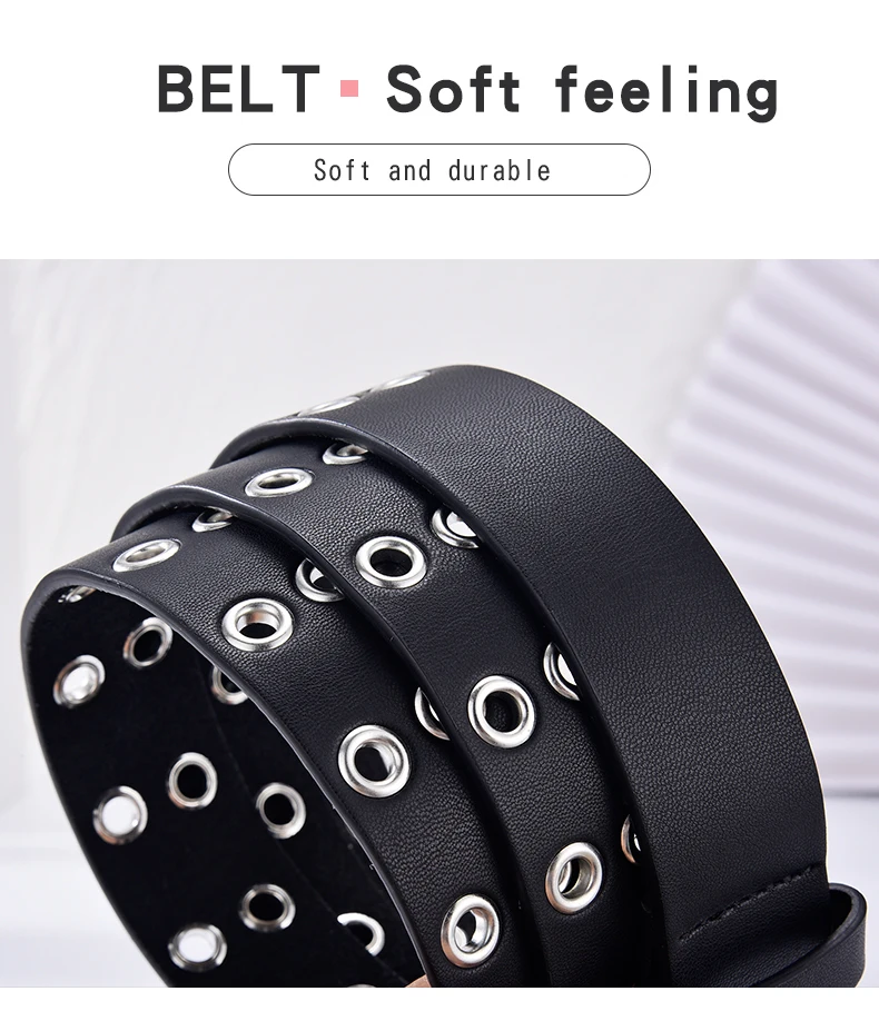 Ремень женский кожаный, с отверстиями в ряд, в стиле панк