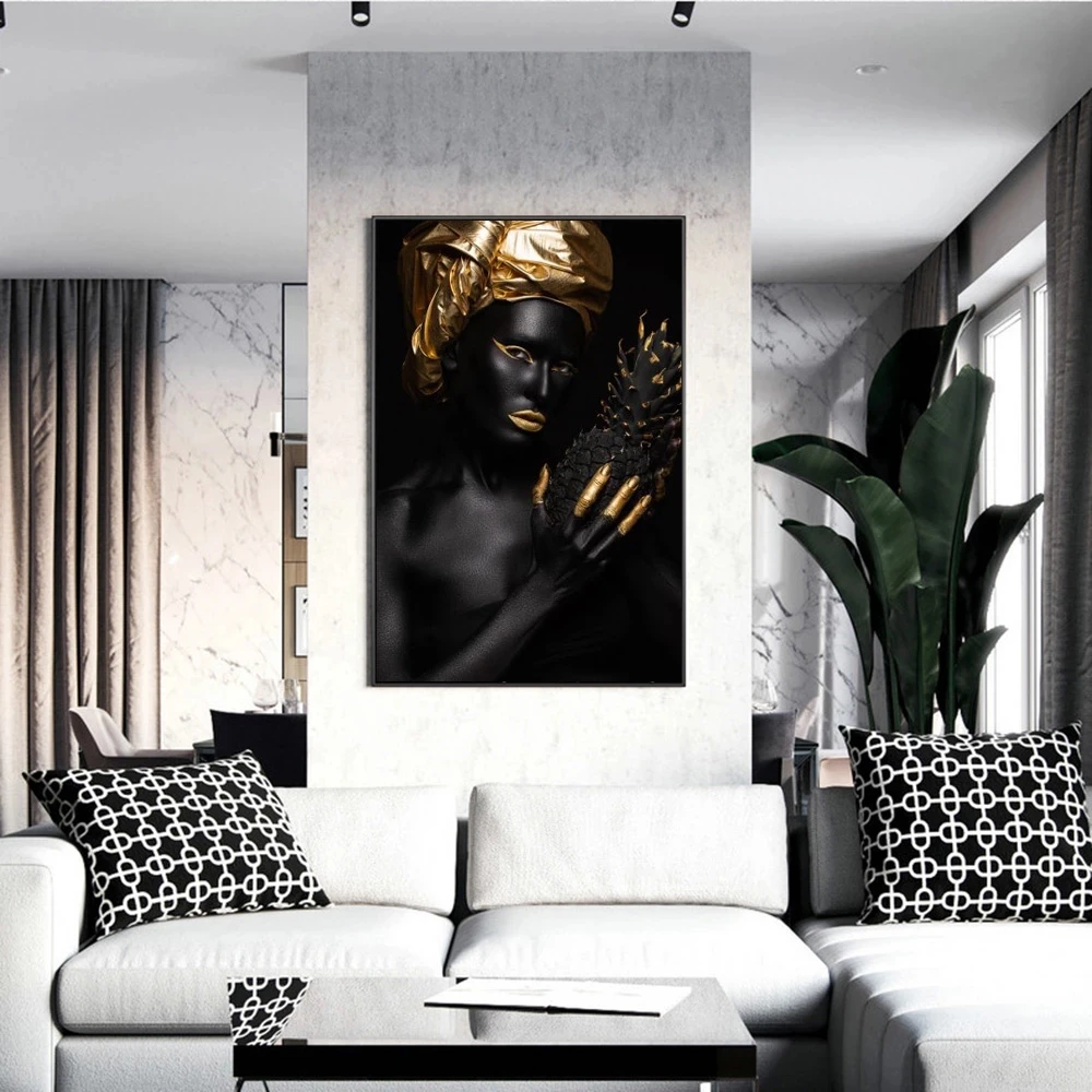Африканская пикантная черная и Золотая женщина, искусство, картина ...