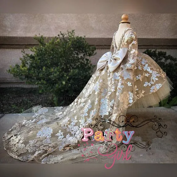 Индивидуальное платье цвета шампанского для маленьких девочек, Мног...