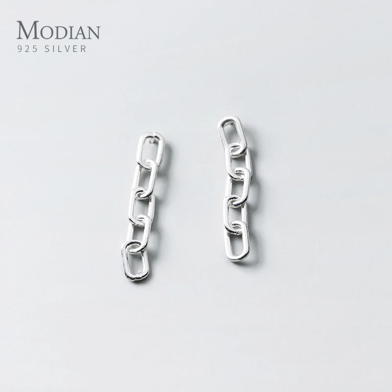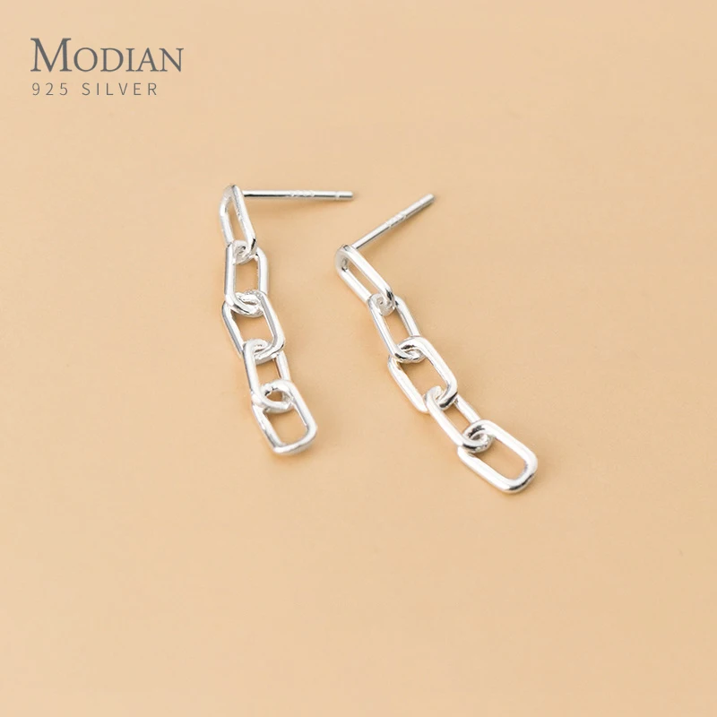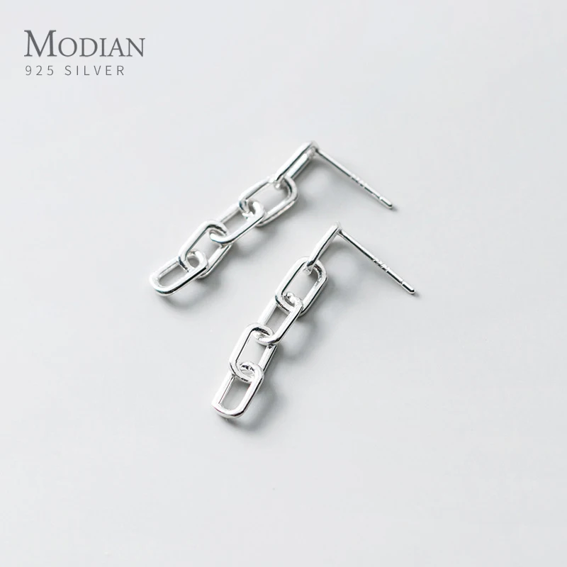 Женские Геометрические висячие серьги Modian, Изящные Ювелирные украшения из серебра 925 пробы с цепочкой-интерлоком в простом дизайне, 2020 год