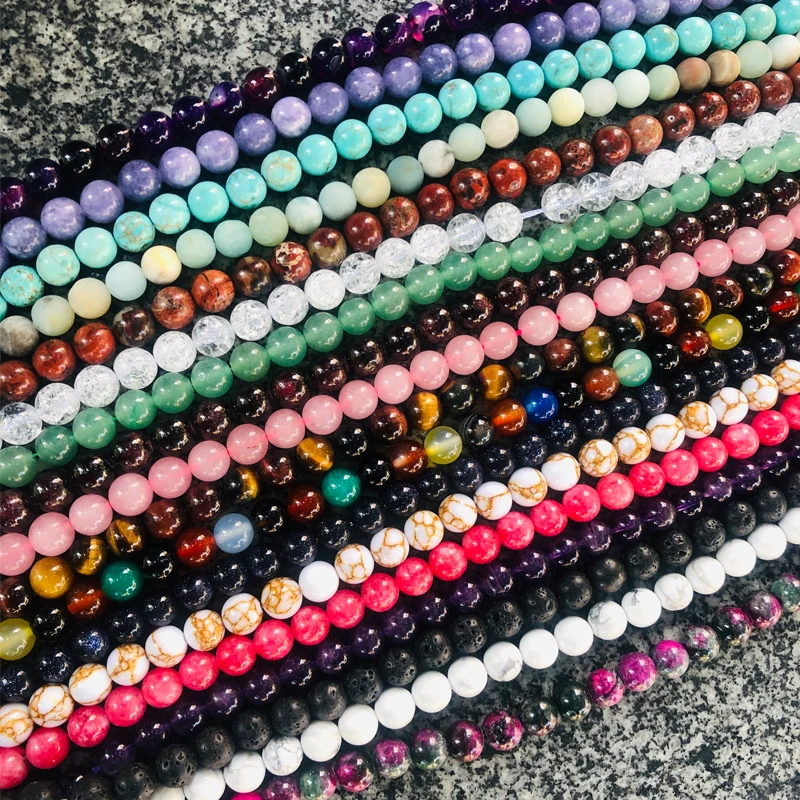 Название камня: Оптовая продажа натуральная Бирюза Агат Лава Амазонит турмалин круглые каменные бусины для самостоятельного изготовления ювелирных изделий браслет 4 6 8 10 12 мм