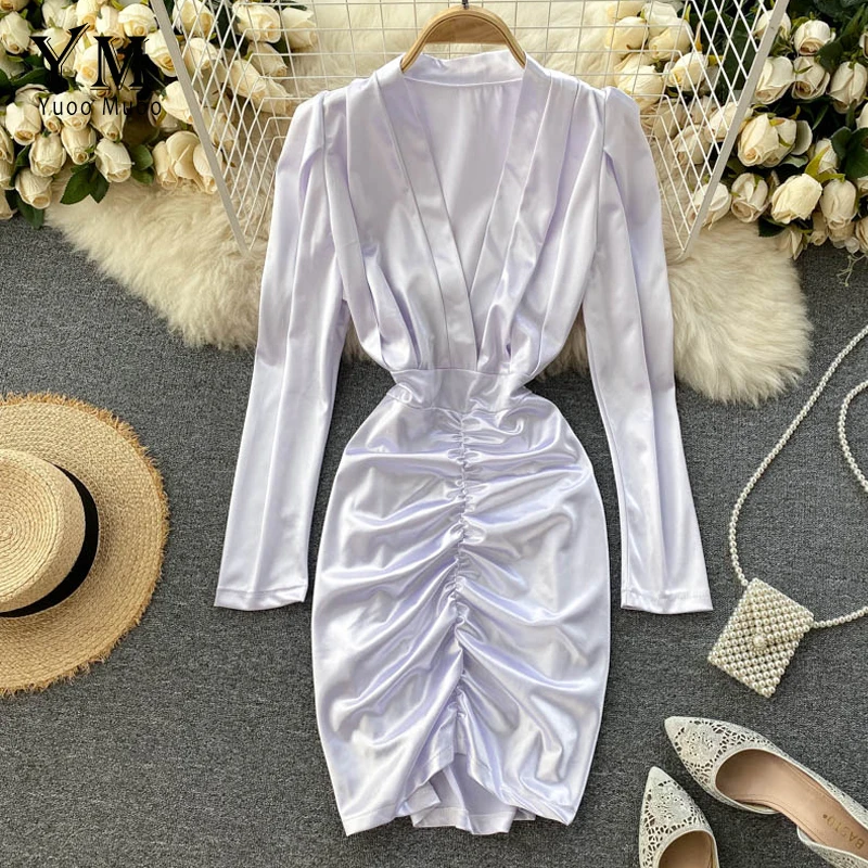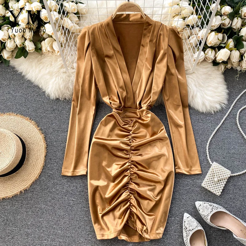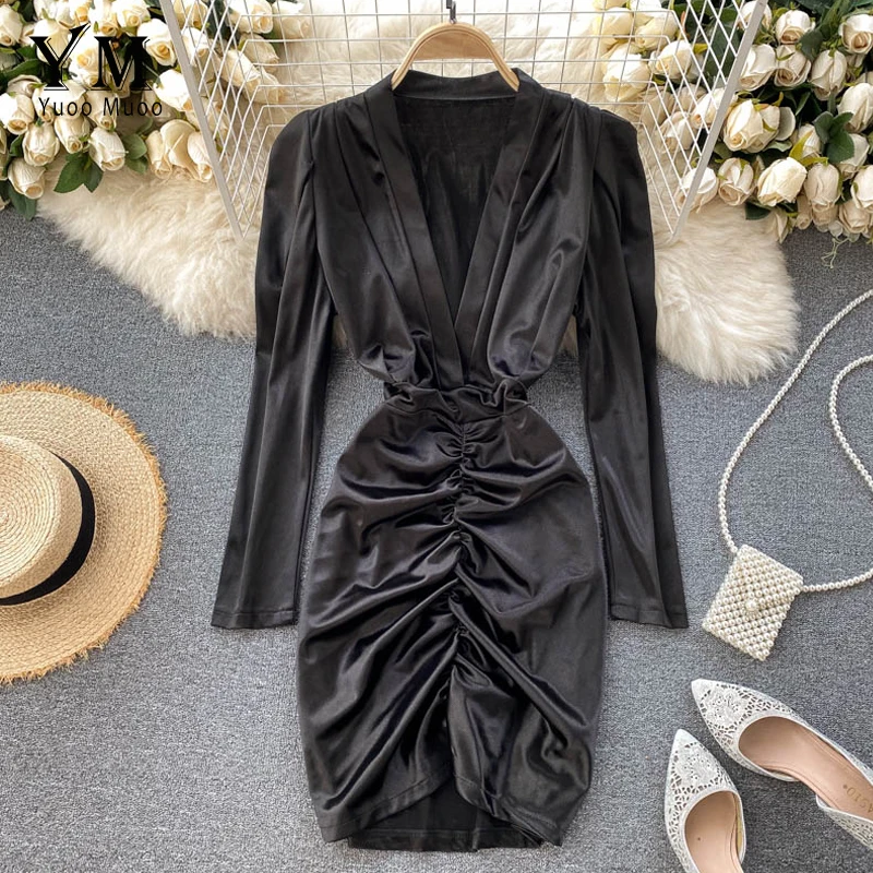 Женское облегающее платье YuooMuoo, короткое вечернее платье с глубоким V-образным вырезом и оборками, для ночного клуба