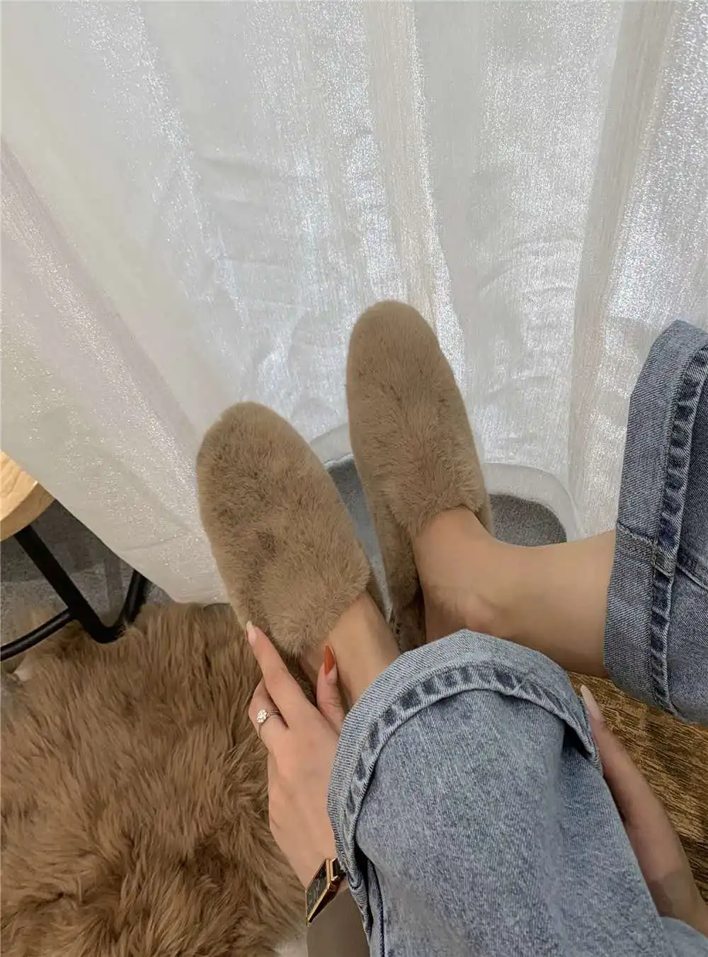 Женские меховые тапочки, сезон осень-зима, туфли Muller, новинка 2020, стильная обувь для ленивых, полутапочки на плоской подошве из кроличьего меха, размер 41, 42, 43, 44