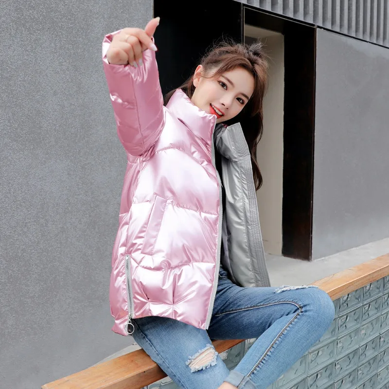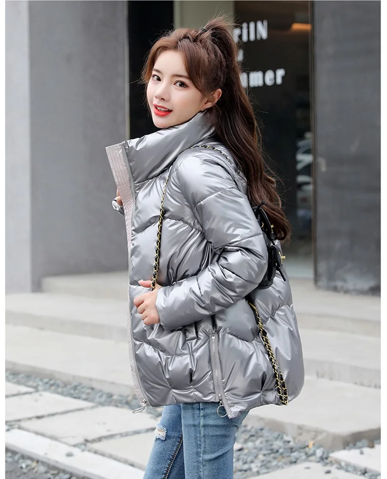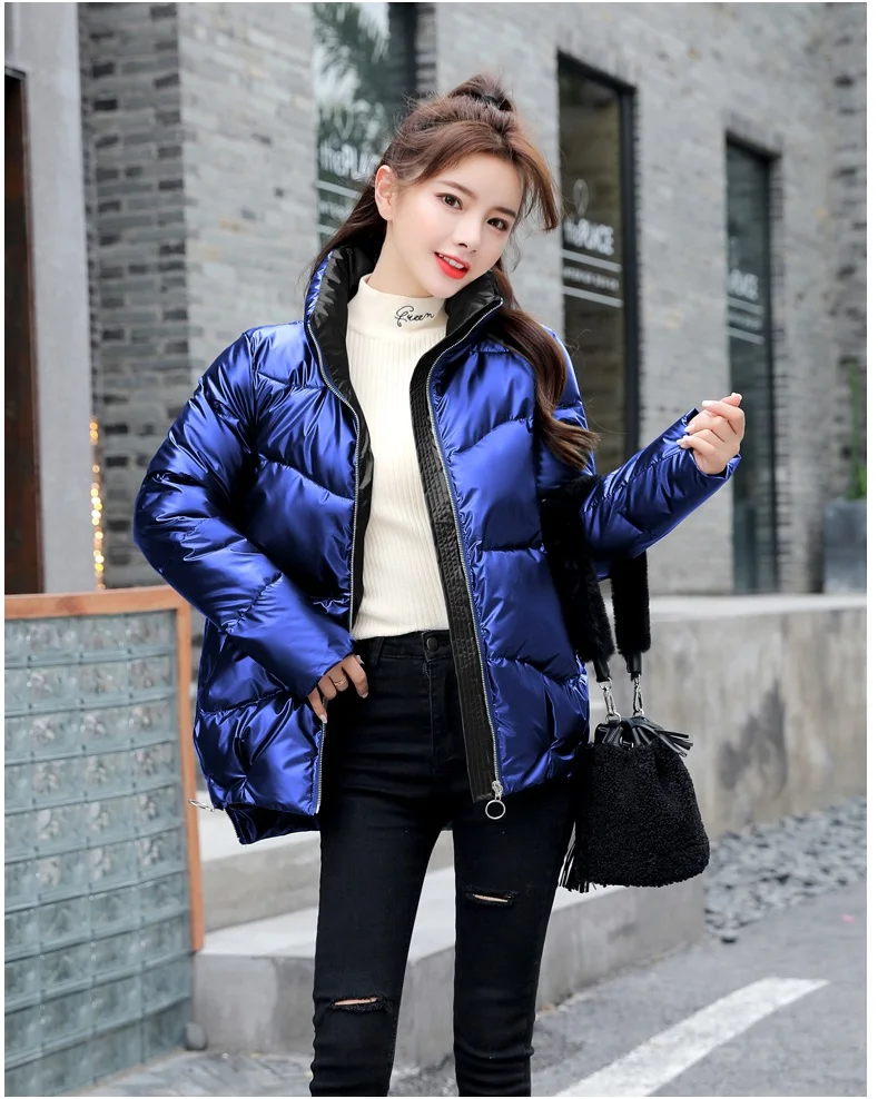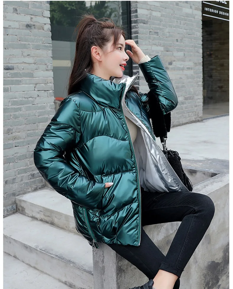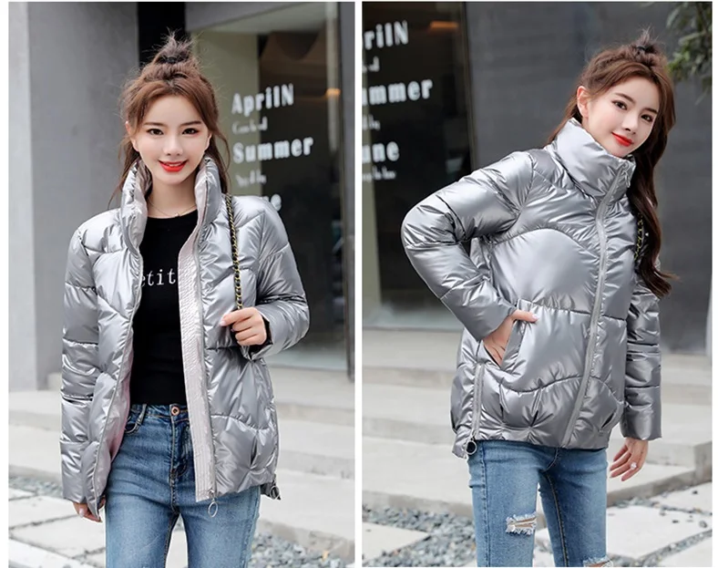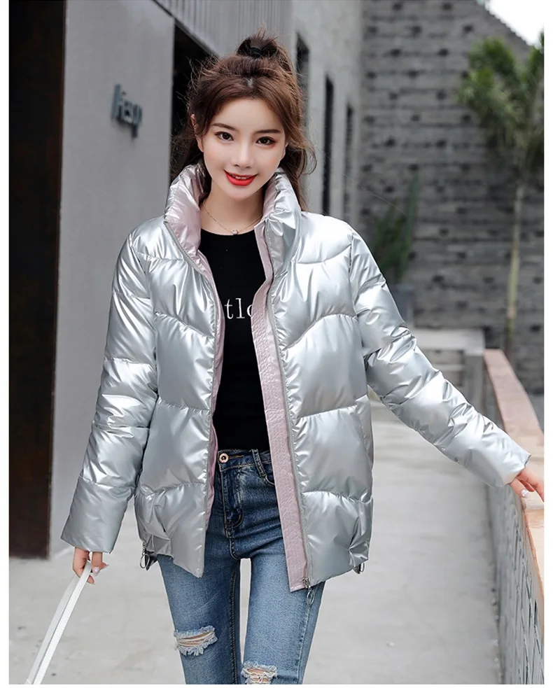 Модный Блестящий пуховик, зимнее пальто для женщин, корейский утепленный студенческий короткий жакет на молнии, повседневное хлопковое пальто размера плюс