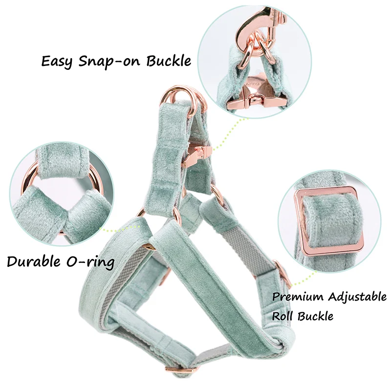 Зеленая бархатная шлейка для собак, базовый поводок для собак, Регулируемая пряжка, хлопковая ткань для собак или кошек
