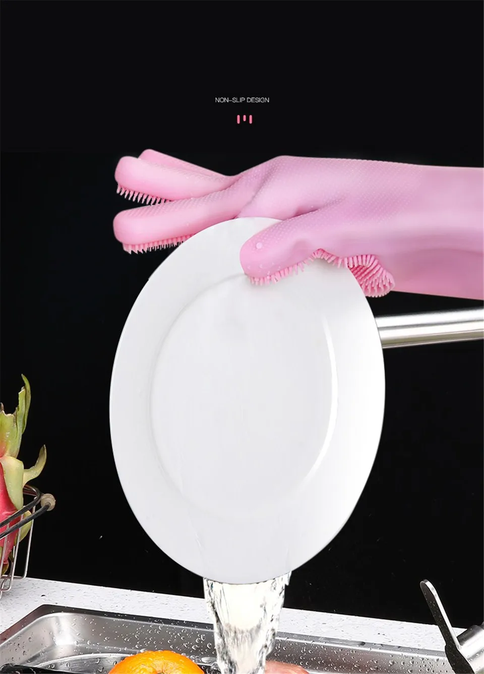 1 пара многофункциональных волшебных силиконовых перчаток для мытья посуды губка Бытовая латексная Перчаточная щетка удобная для кухонных инструментов для чистки