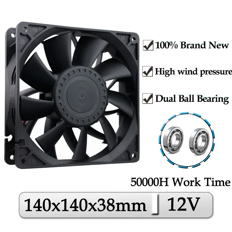 1 шт. Gdstime DC 12 В 140 мм x 38 мм 140 мм двухшаровой компьютерный чехол кулер 140x38 мм 14 см осевой высокоскоростной сварочный аппарат Вентилятор охлаждения