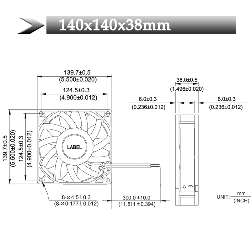 Размер вентилятора140x140x38mm