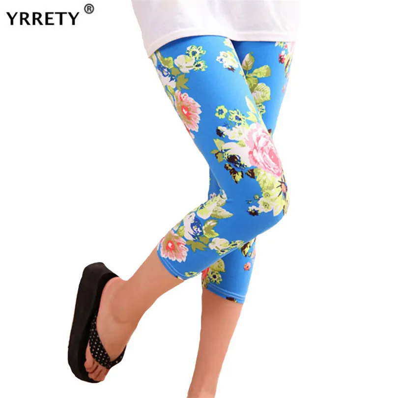 Женские Капри YRRETY с высокой талией, штаны с цветочным принтом, женские леггинсы для фитнеса, узкая летняя одежда с эластичным низом